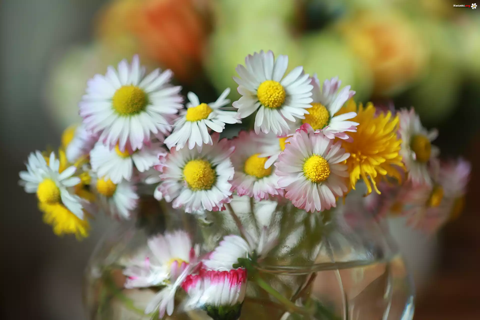 Stokrotki, Białe, Kwiaty, Szklany, Wazonik - Zdjęcia