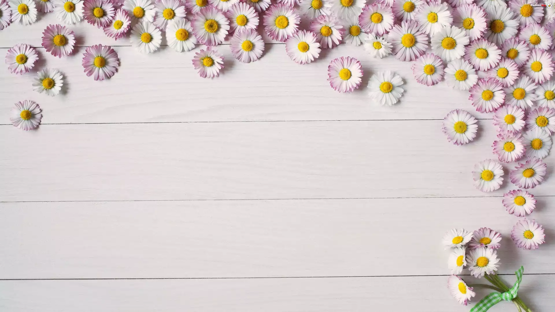 Stokrotki, Bukiecik, Wstążeczka, Deski - Zdjęcia