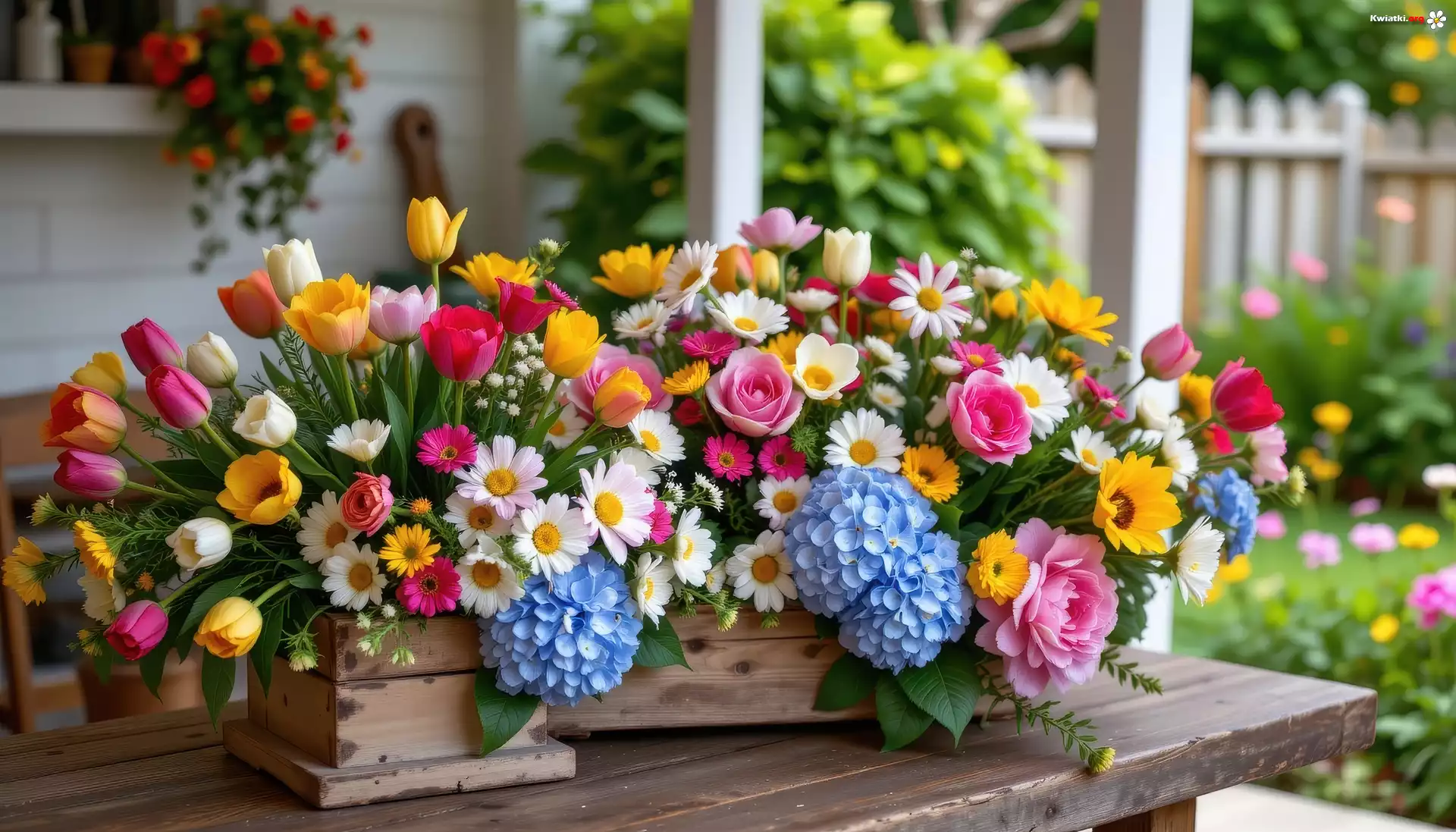 Kolorowe, Kwiaty, Skrzynka, Stół - Zdjęcia