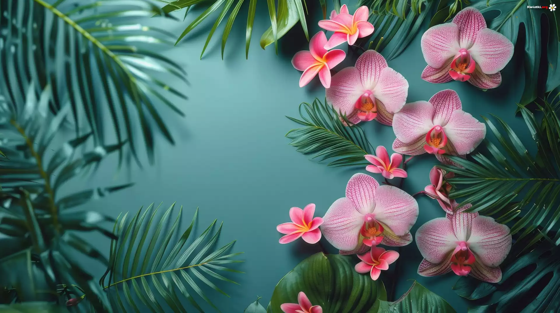 Kwiaty, Różowe, Orchidee, Storczyki, Liście, Grafika - Zdjęcia