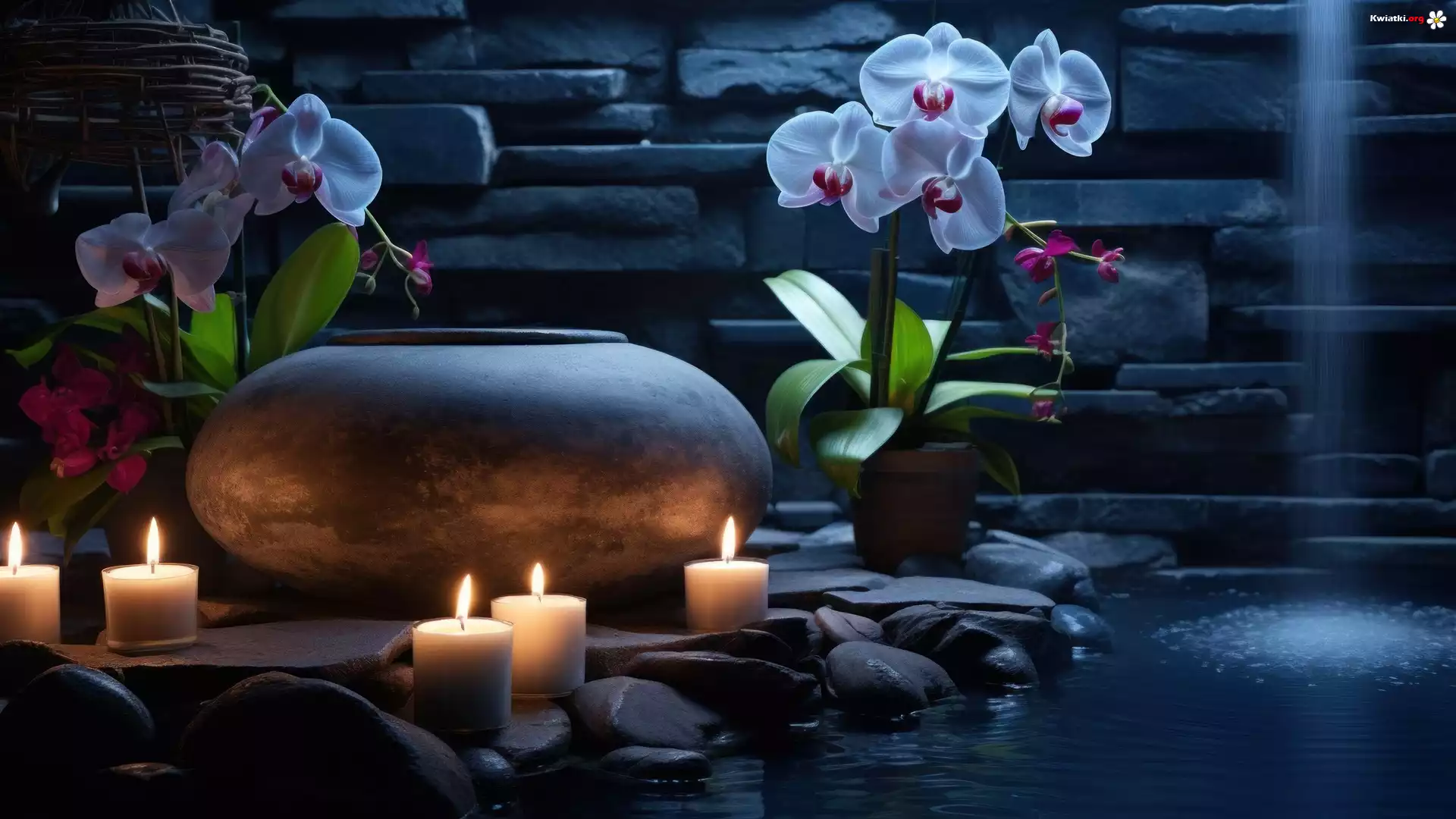Świece, Storczyki, Kamienie, Grafika, Kompozycja - Zdjęcia