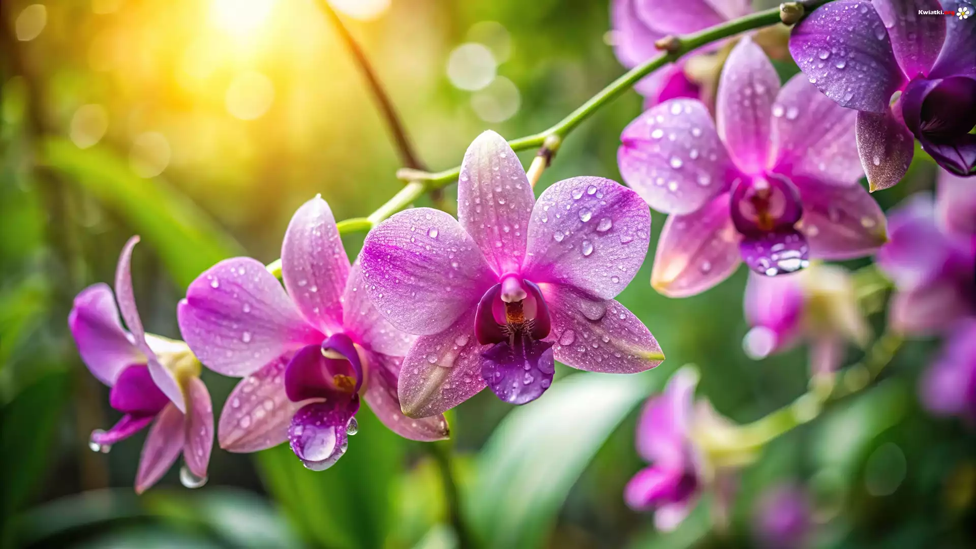 Kwiat Orchidea, Storczyki, Kwiaty, Krople, Grafika