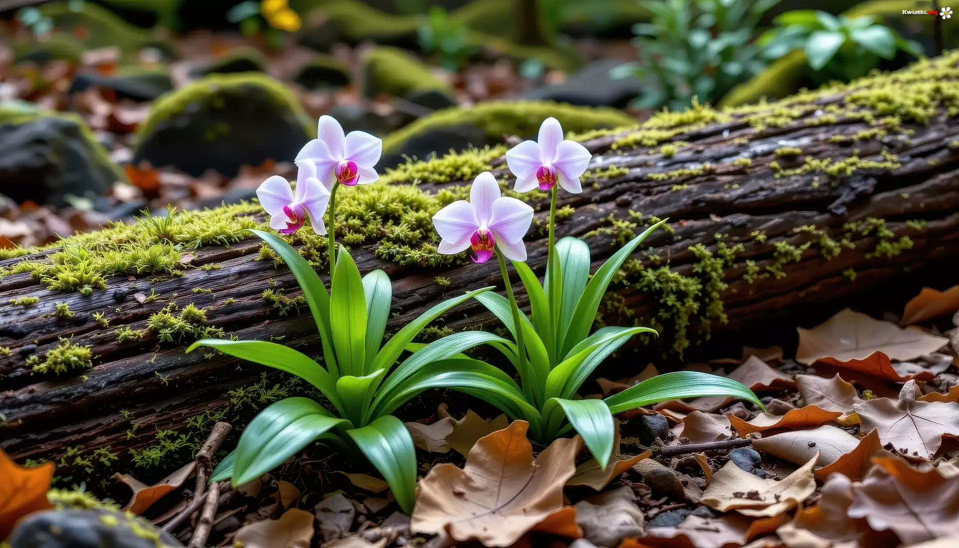 Jasnoróżowe, Storczyki, Listki, Kłoda, Mech - Zdjęcia