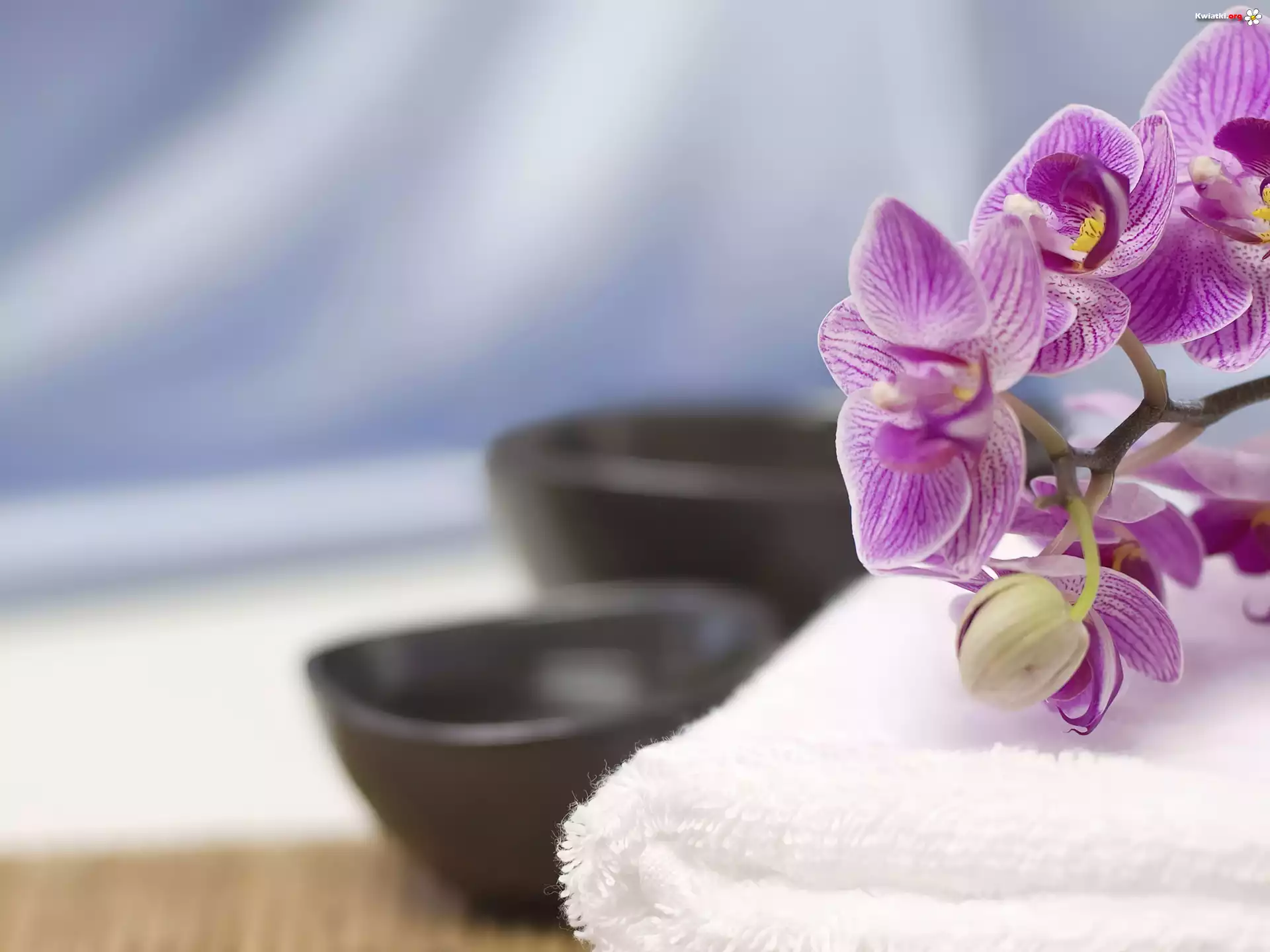 Storczyki, Biały, Ręcznik, Miseczki - Zdjęcia
