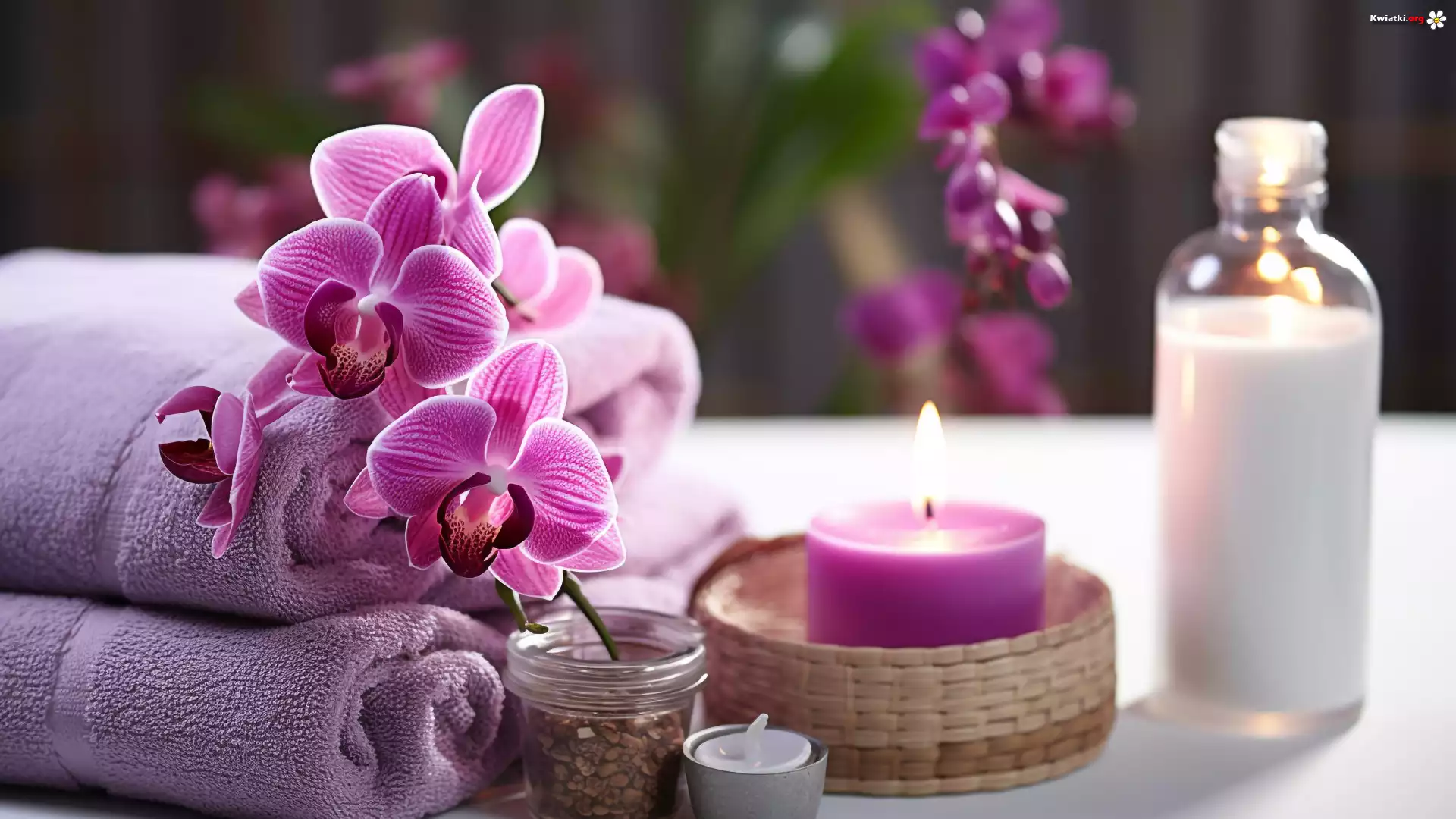 Kwiat SPA, Kwiaty, Fioletowe, Storczyki, Ręczniki, Świece