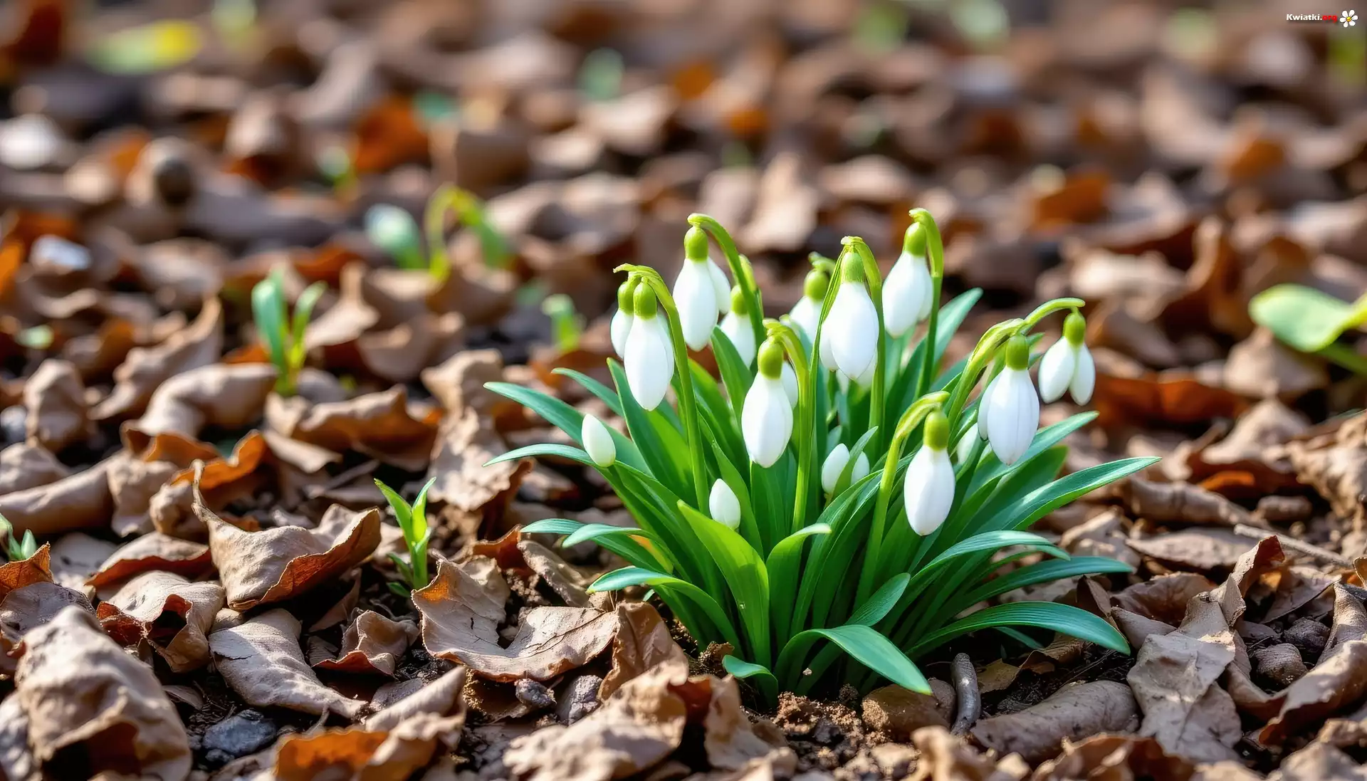 Kwiaty, Białe, Przebiśniegi, Suche, Liście, AI - Zdjęcia