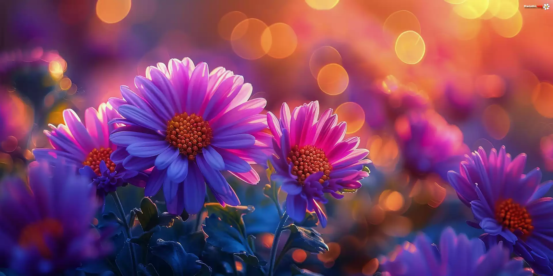 Kwiaty, Fioletowe, Astry, Światło, Bokeh, Grafika - Zdjęcia