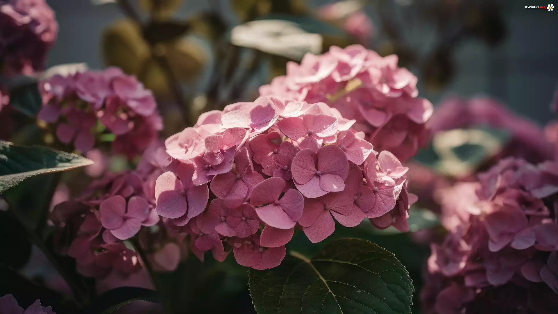 Kwiaty, Hortensje, Liście, Światło - Zdjęcia