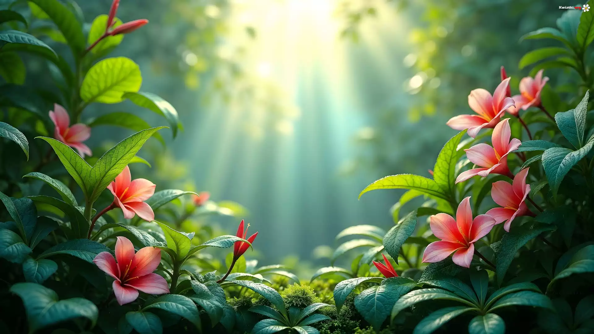 Kwiaty, Liście, Przebijające światło - Zdjęcia
