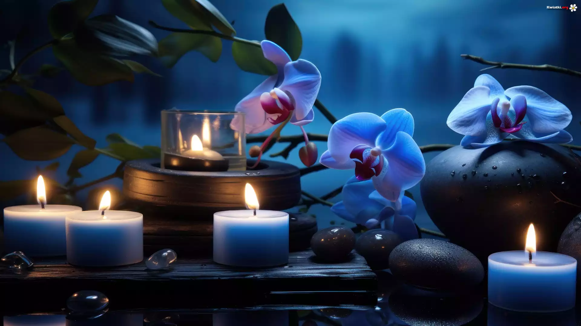 Kwiat Niebieskie, Świece, Storczyki, Kamienie, Grafika