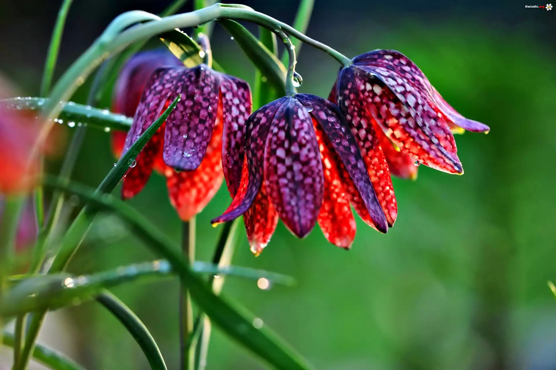Kwiat Szachownica Kostkowata, Światło, Krople, Rosa