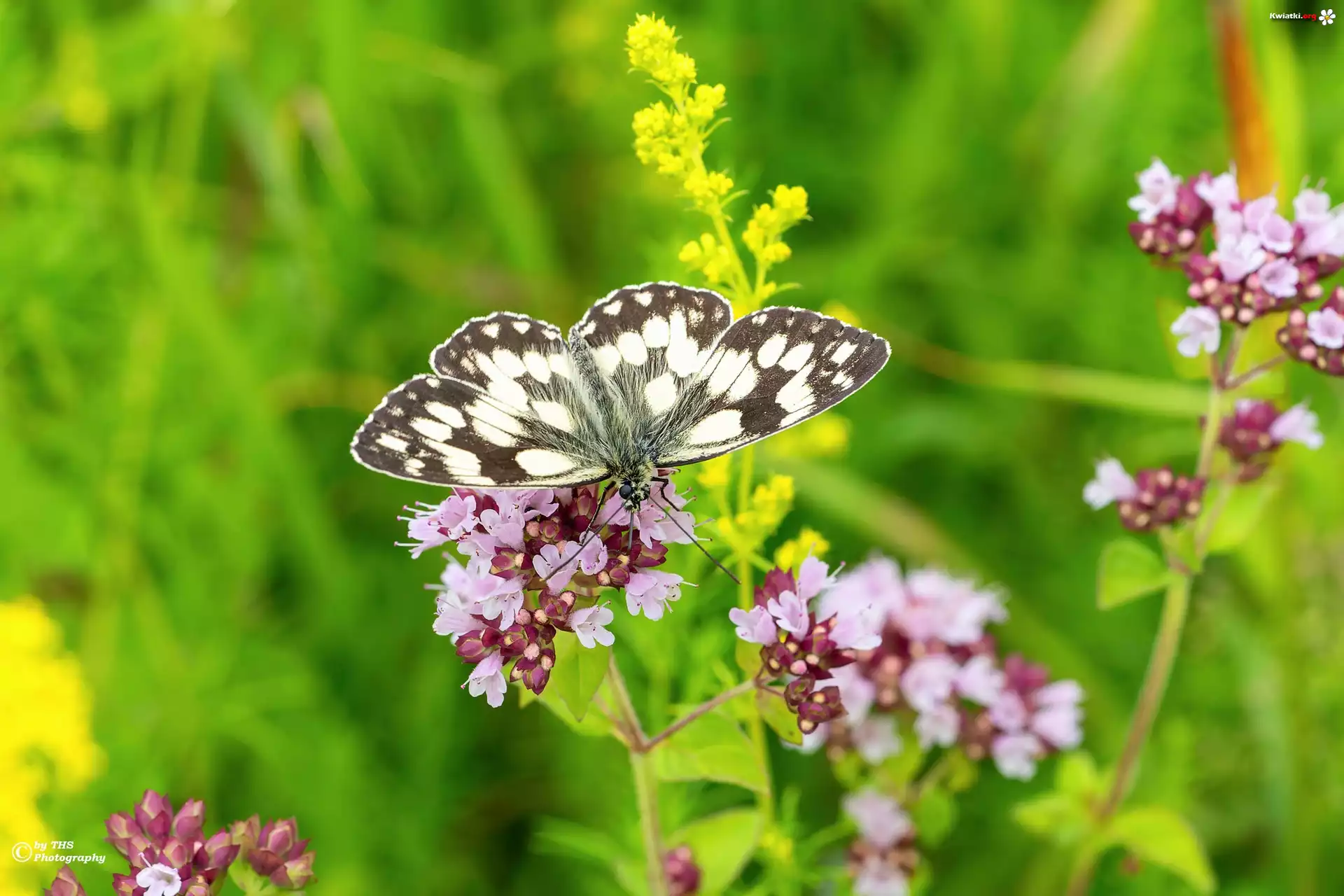 Kwiat Owad, Motyl, Polowiec szachownica, Kolorowe, Kwiaty