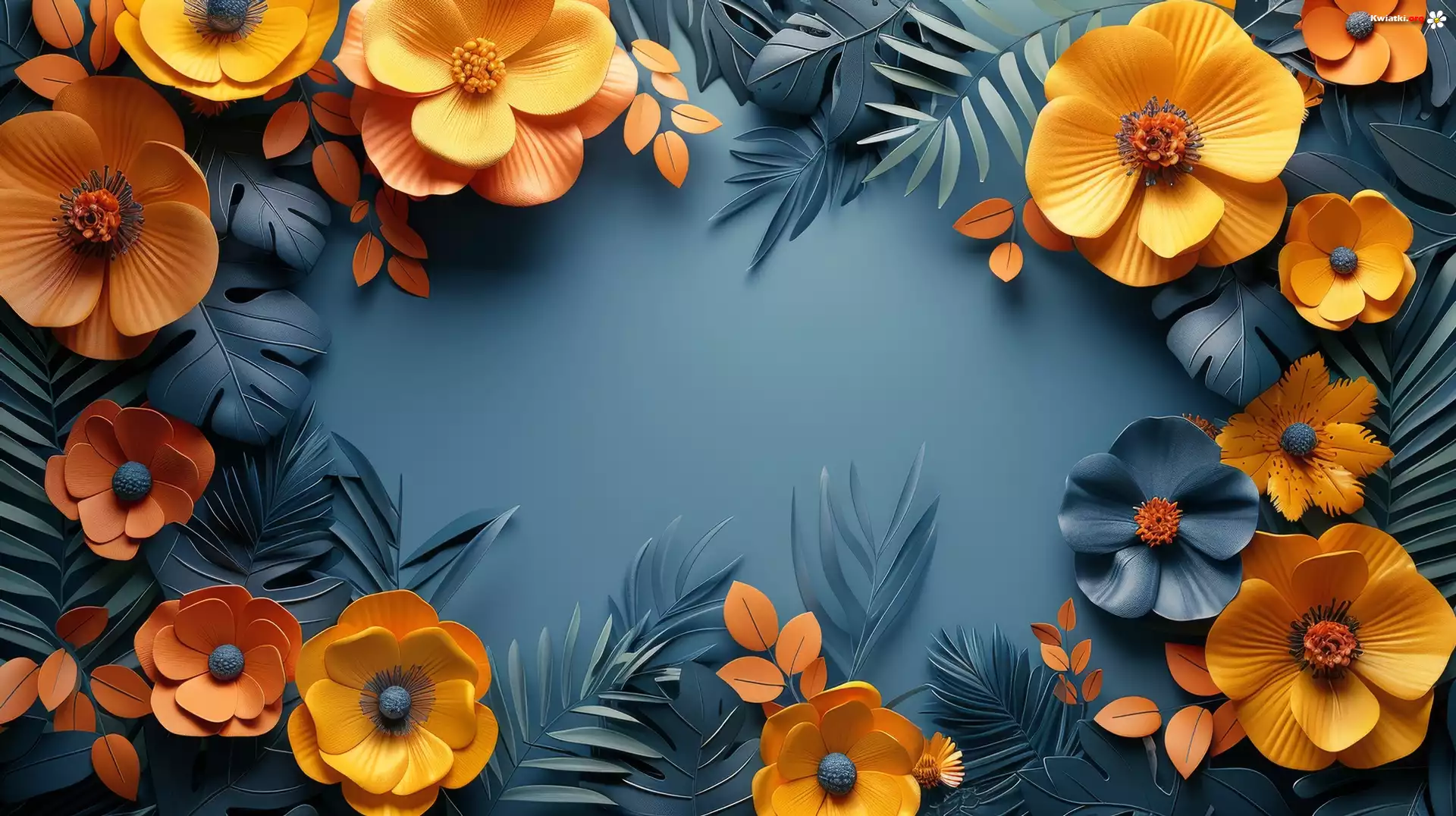 Kwiaty, Pomarańczowe, Liście, Szare, Tło, Grafika - Zdjęcia