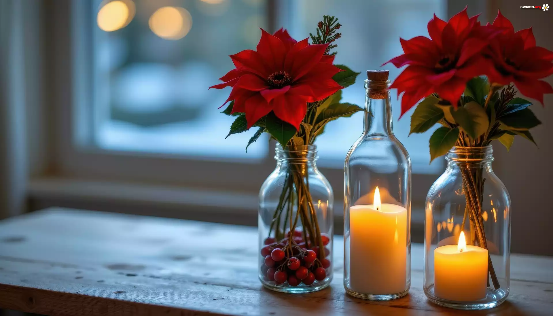Kwiat Kwiaty, Gwiazda betlejemska, Szklane, Naczynia, Świece, Okno
