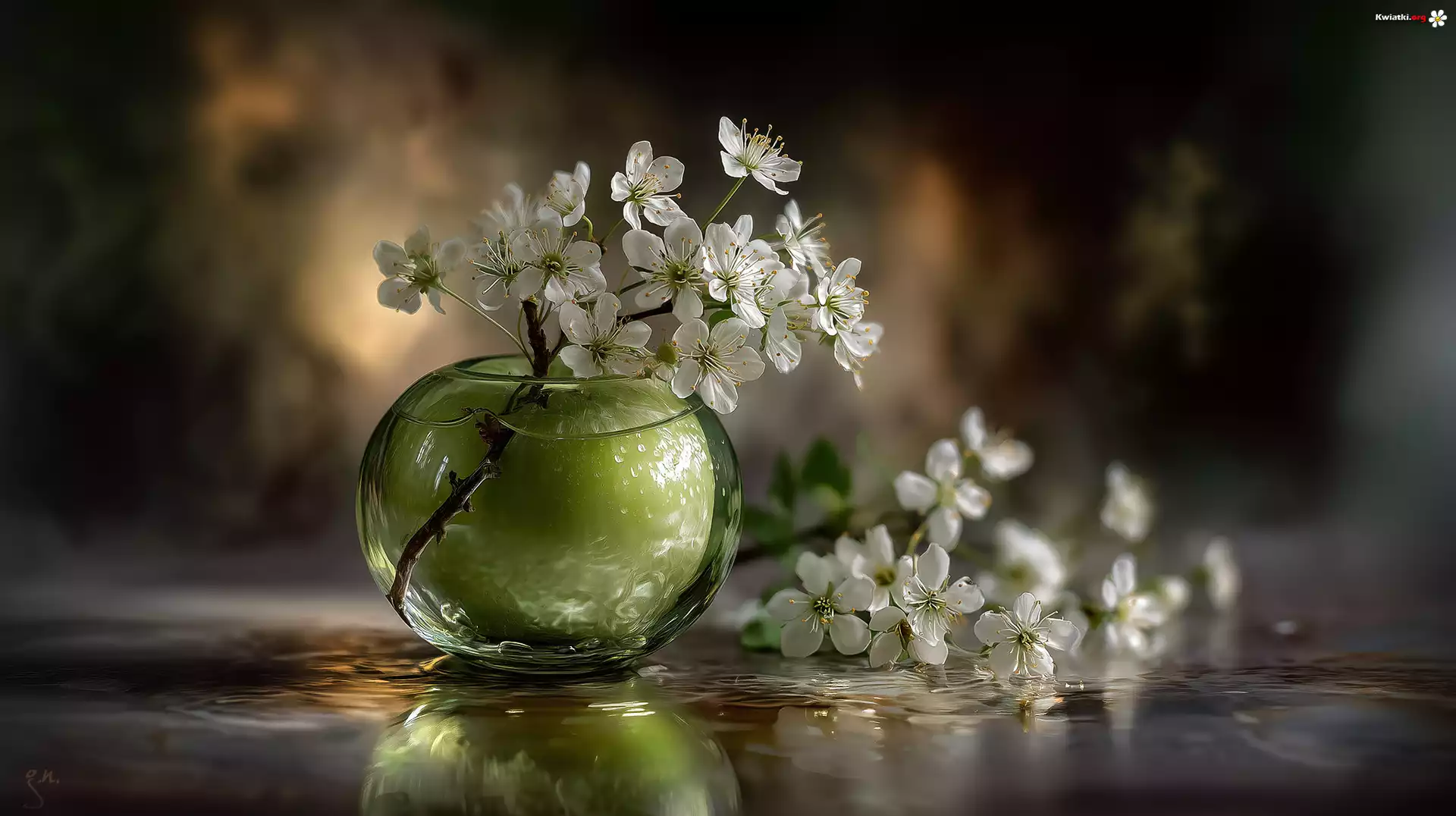 Kwiat Szklany, Wazonik, Zielone, Jabłko, Białe, Kwiaty, Drzewo owocowe, Grafika AI