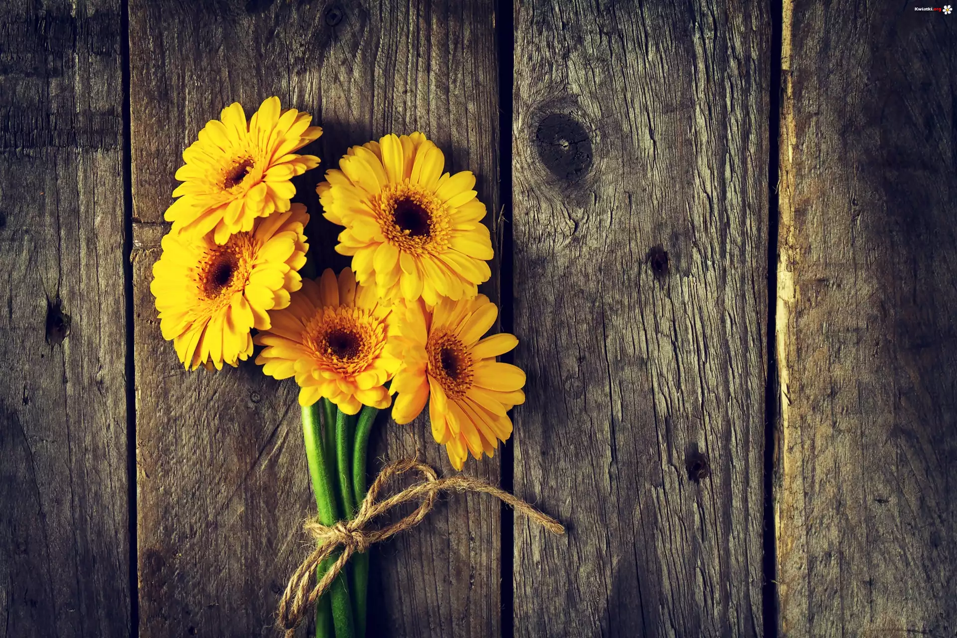 Kwiat Żółte, Gerbery, Sznurek, Deski