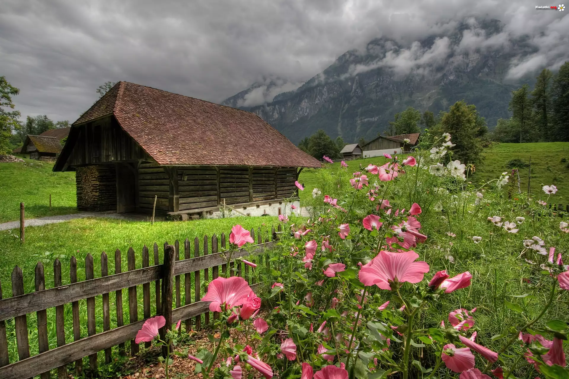 Szopa, Kwiaty, Płotek, Chmury - Zdjęcia