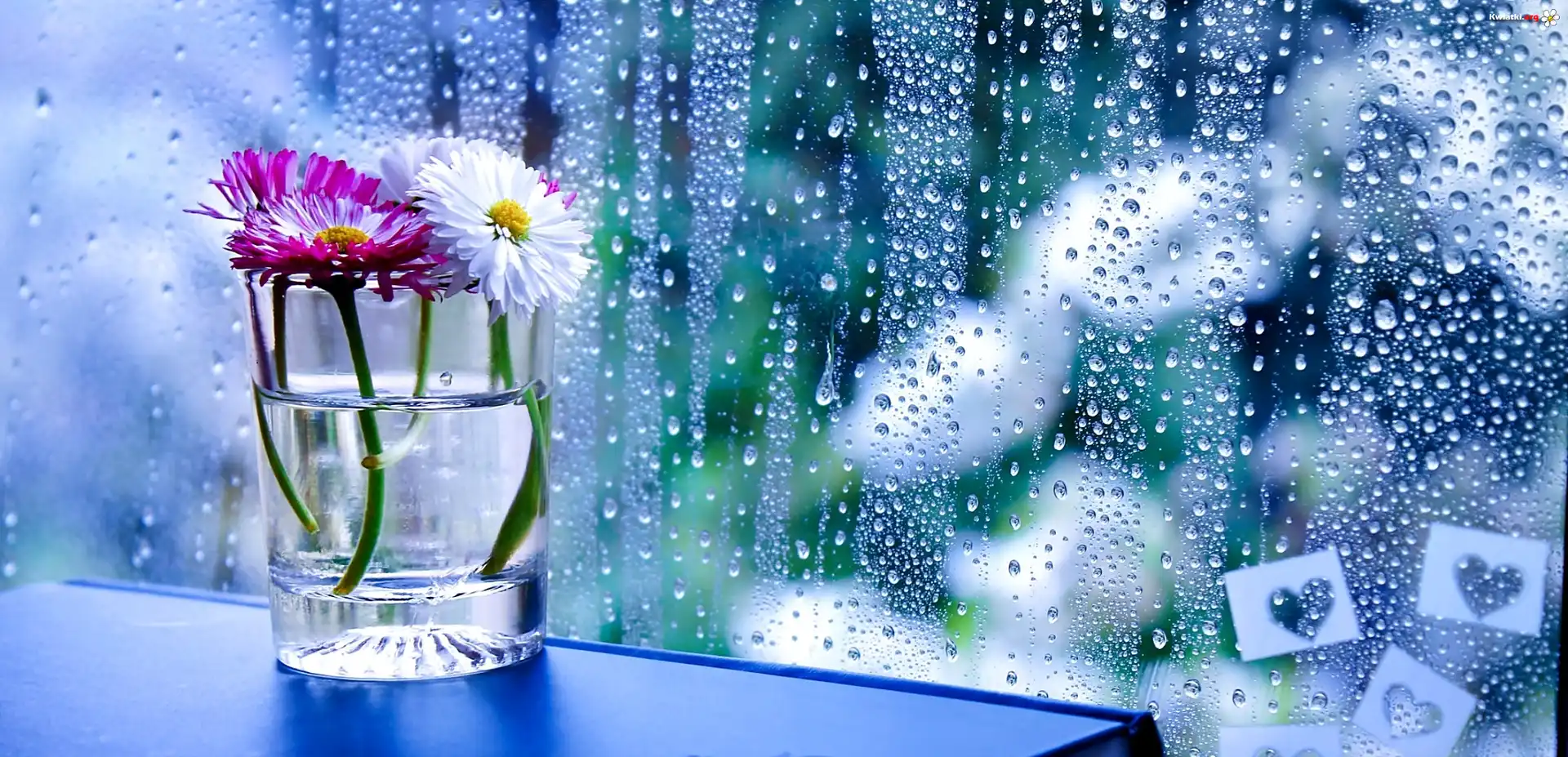 Kwiat Kwiaty, Szyba, Deszcz