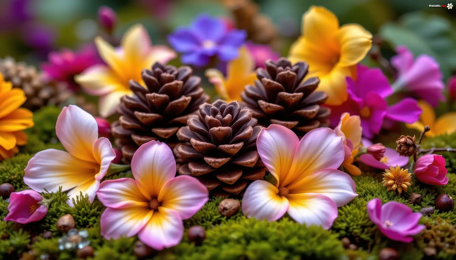 Kolorowe, Kwiaty, Trzy, Szyszki, Grafika AI - Zdjęcia