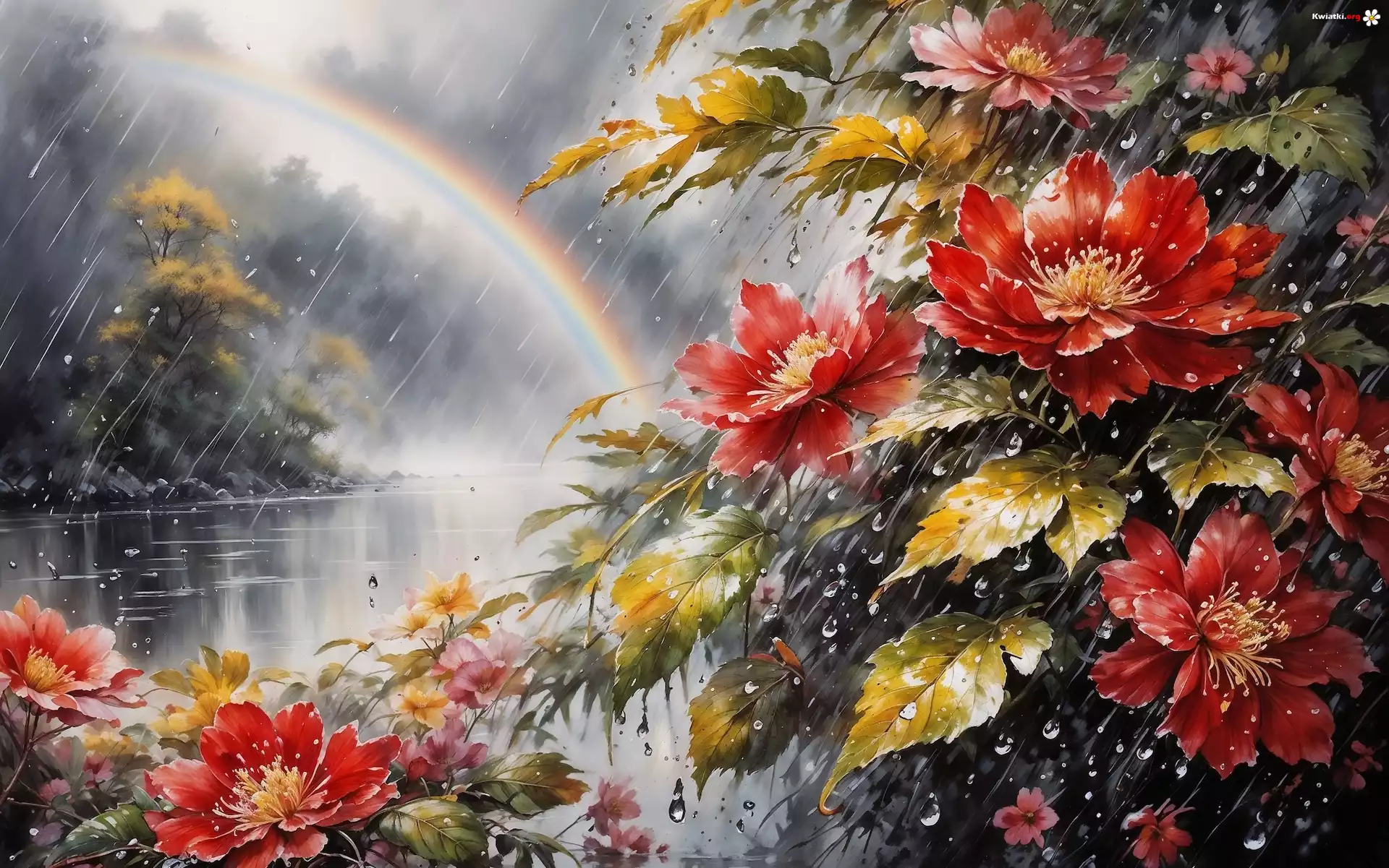 Grafika, Kwiaty, Deszcz, Tęcza - Zdjęcia