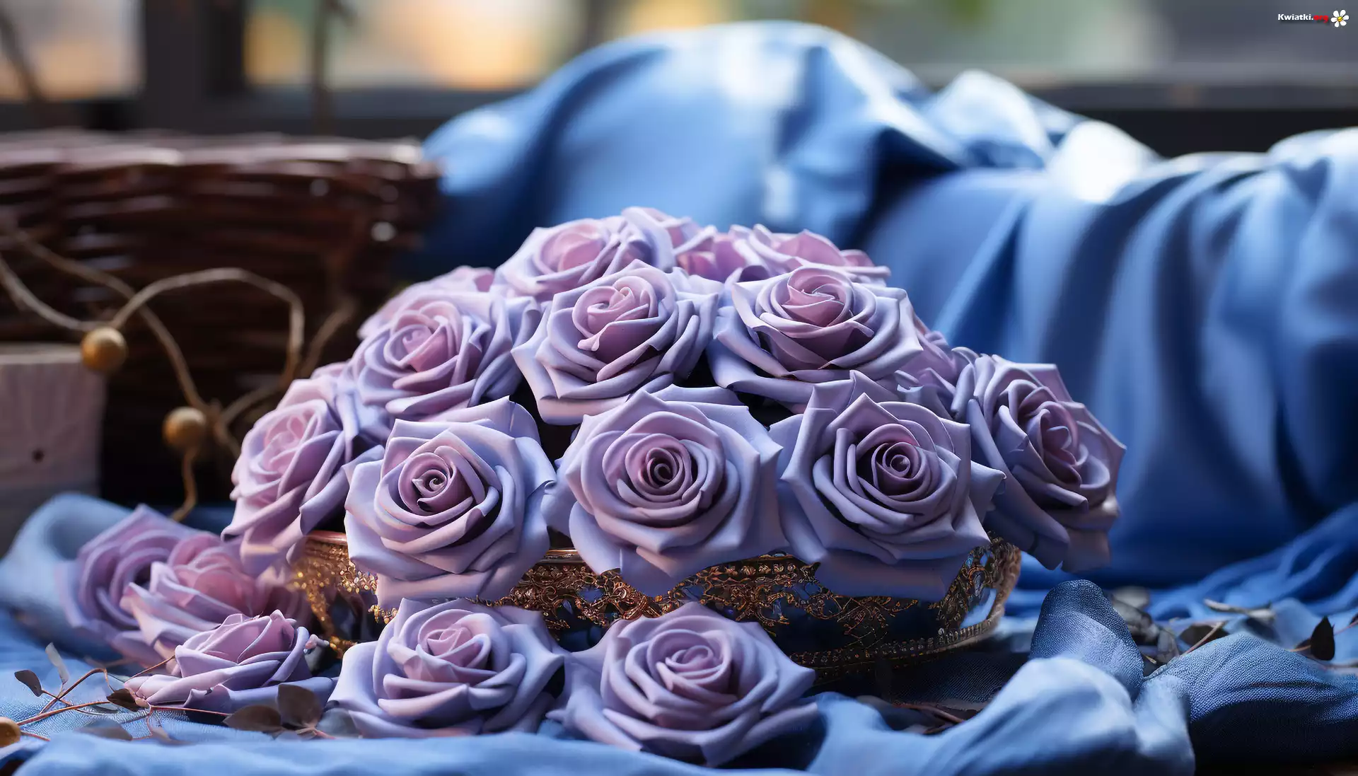 Fioletowe, Róże, Niebieska, Tkanina, Kompozycja, Grafika - Zdjęcia