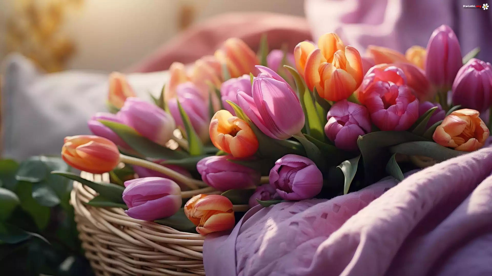 Kolorowe, Tulipany, Kosz, Tkanina - Zdjęcia