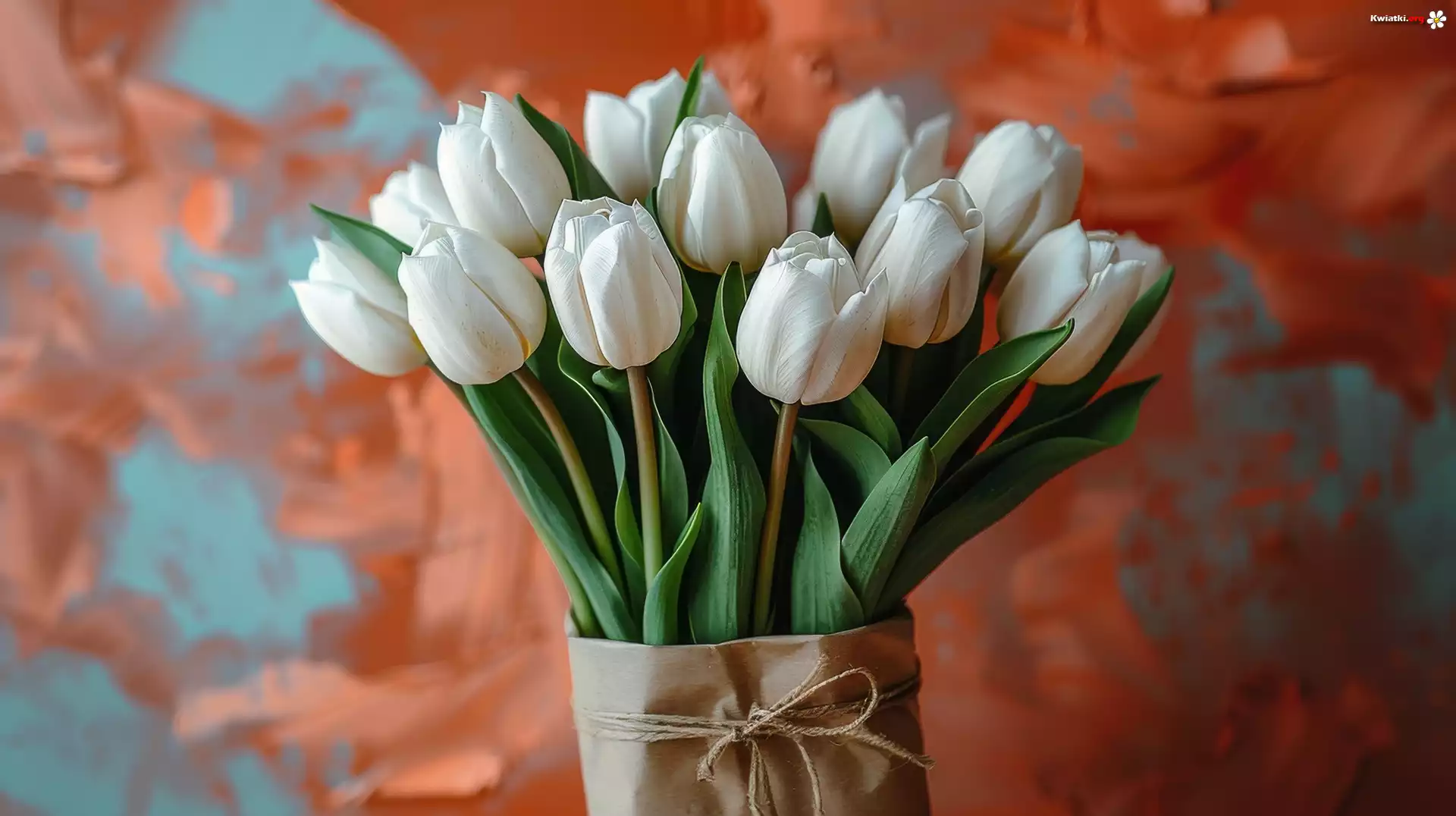 Bukiet, Kwiaty, Białe, Tulipany, Szary, Papier, Sznurek, Tło - Zdjęcia