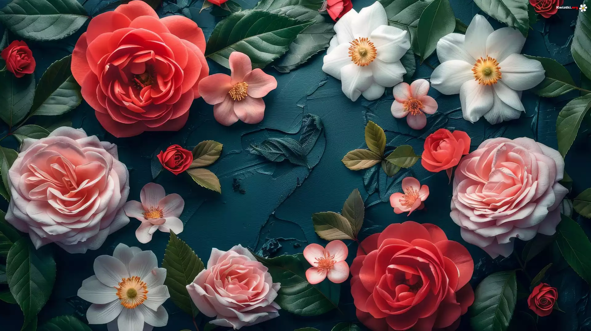 Kwiat Kwiaty, Róże, Listki, Tło