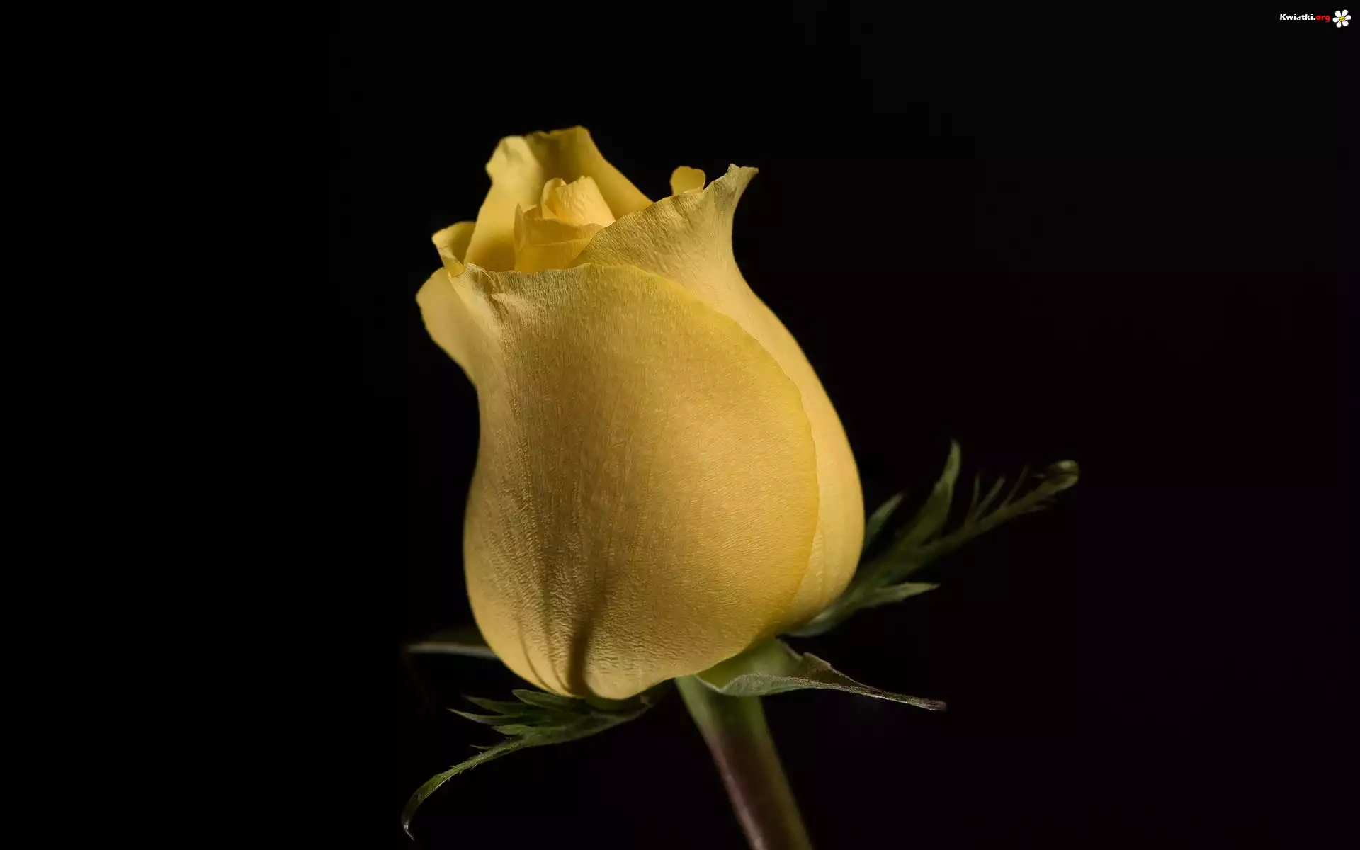 Żółta, Róża, Pączek, Tło czarne - Zdjęcia