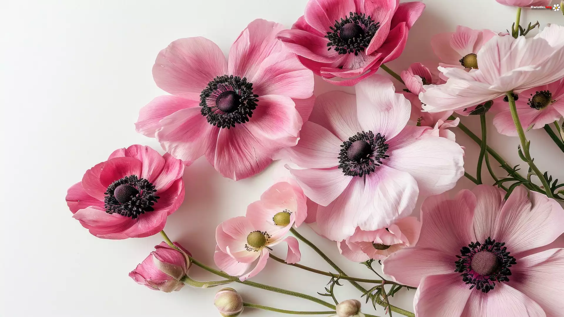 Różowe, Zawilce, Białe, Tło - Zdjęcia