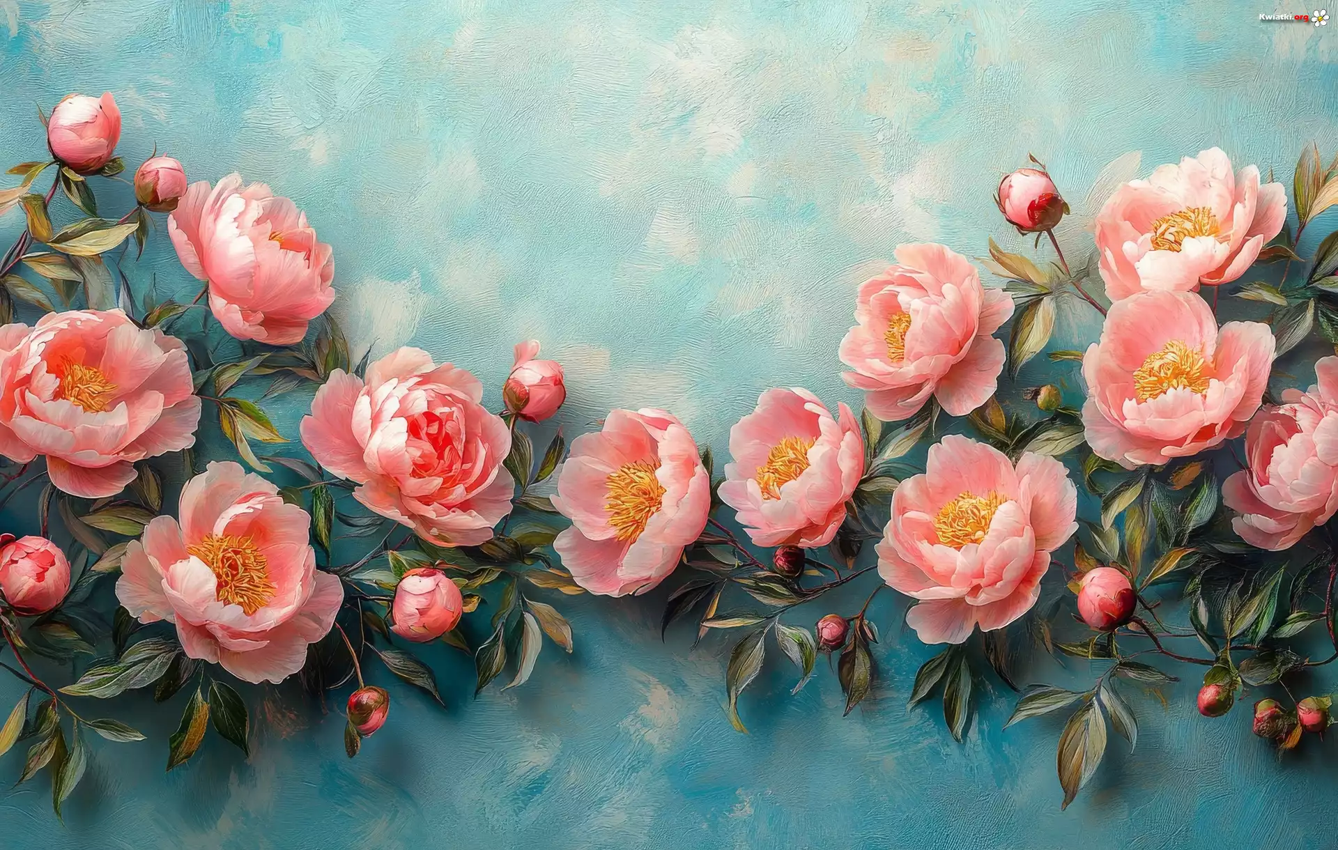 Kwiat Różowe, Piwonie, Niebieskie, Tło