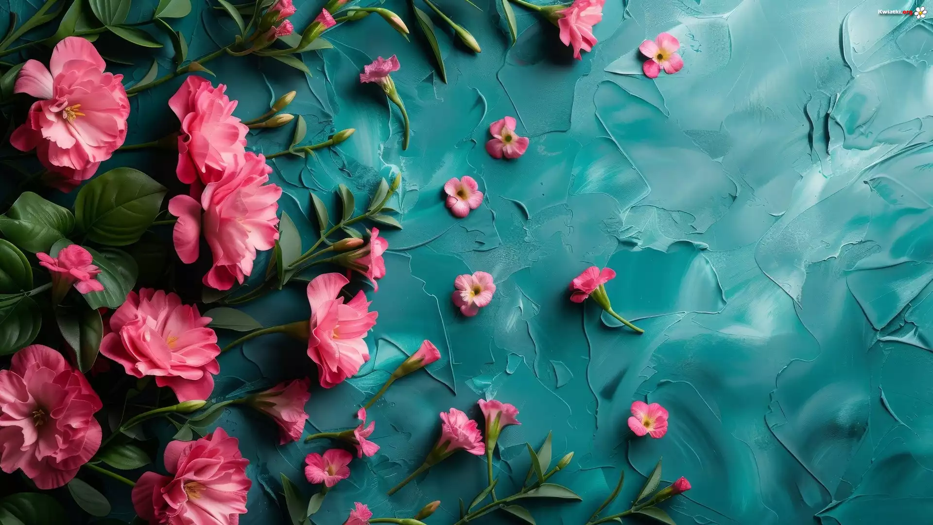 Różowe, Kwiaty, Turkusowe, Tło - Zdjęcia