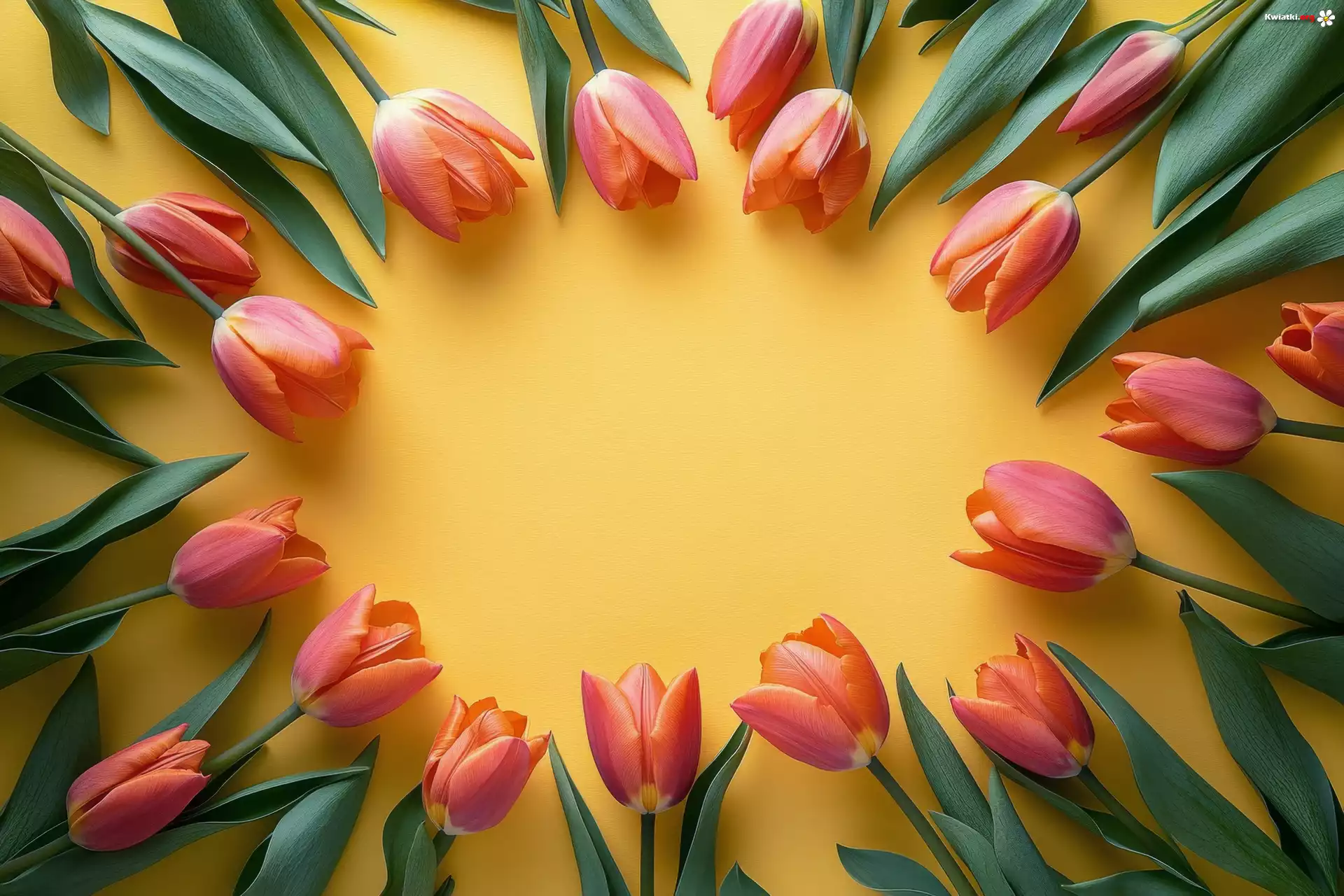 Kwiat Różowe, Tulipany, Żółte, Tło