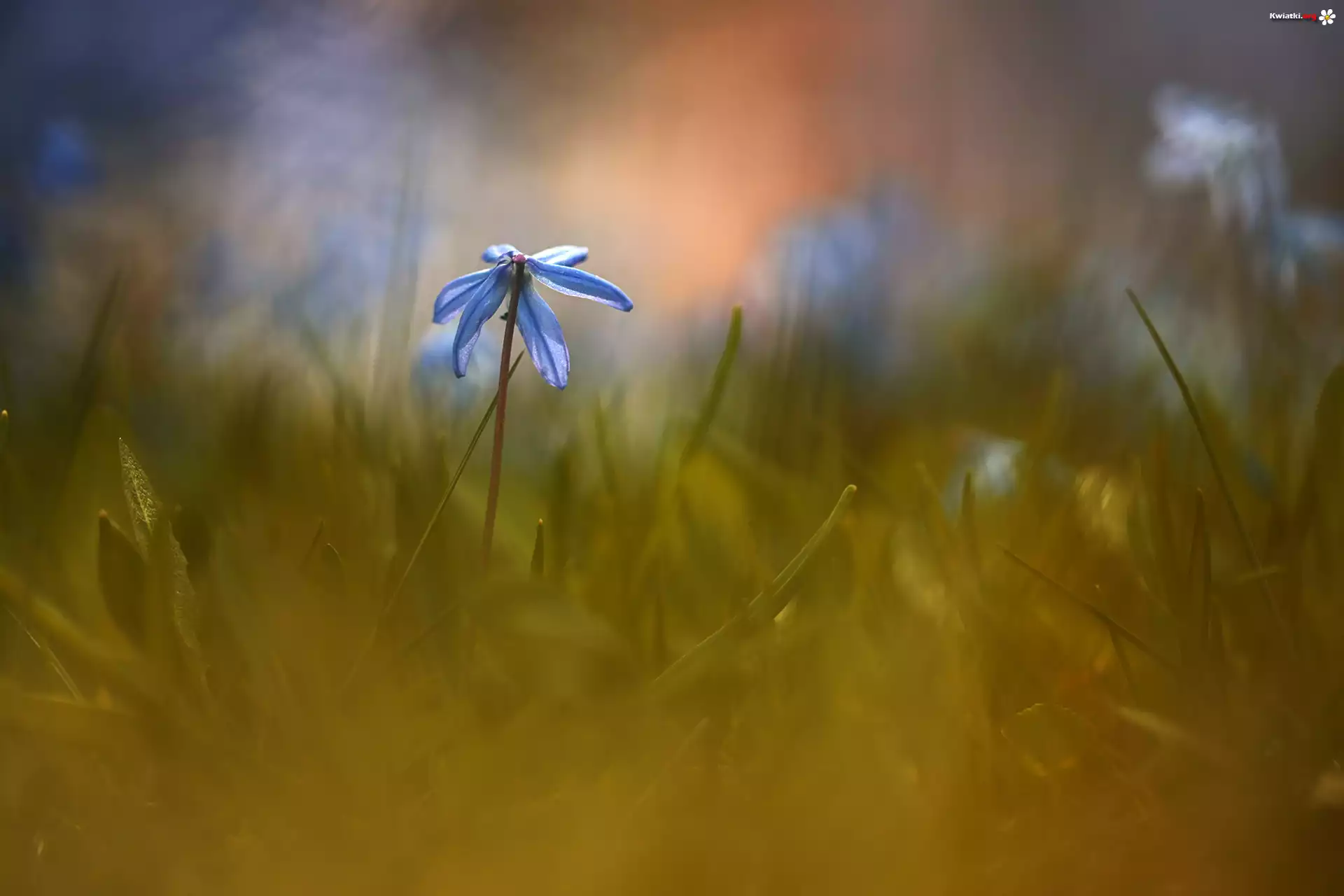Kwiat Cebulica syberyjska, Niebieski, Kwiat, Trawa