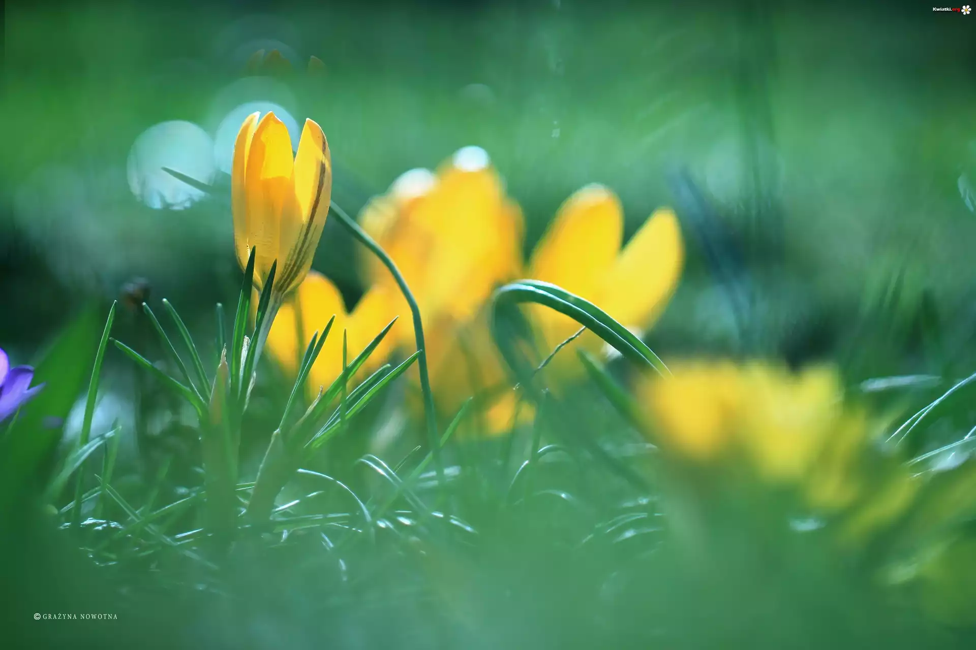 Kwiat Żółty, Krokus, Trawa, Kwiat