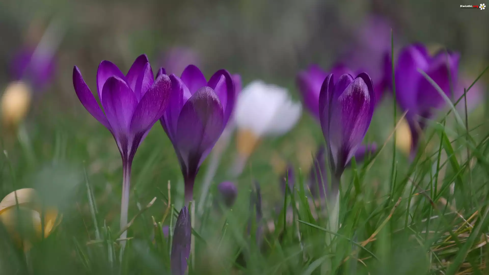 Kwiaty, Ciemnofioletowe, Krokusy, Trawa - Zdjęcia