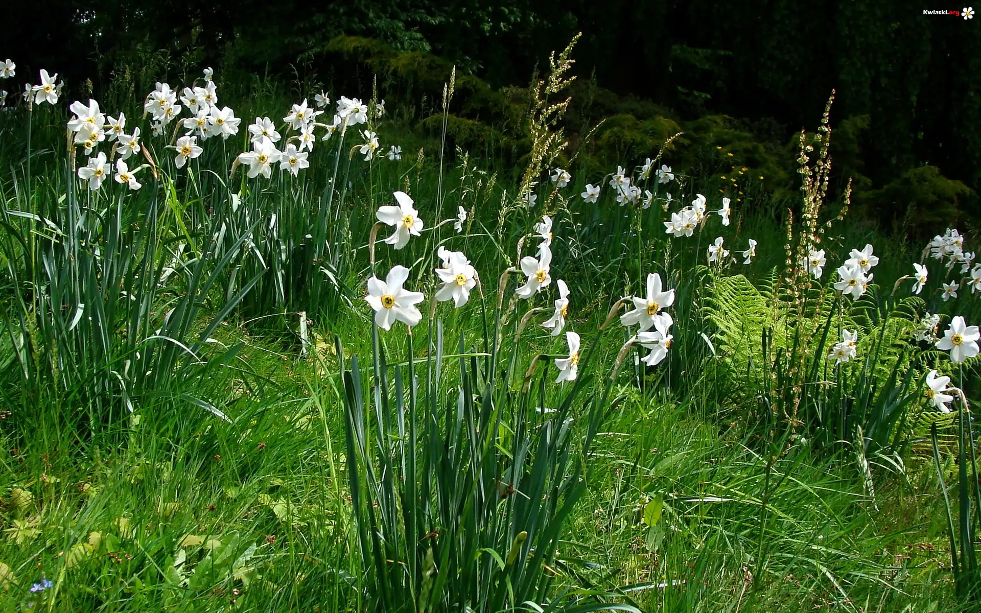 Kwiaty, Trawa, Narcyze - Zdjęcia