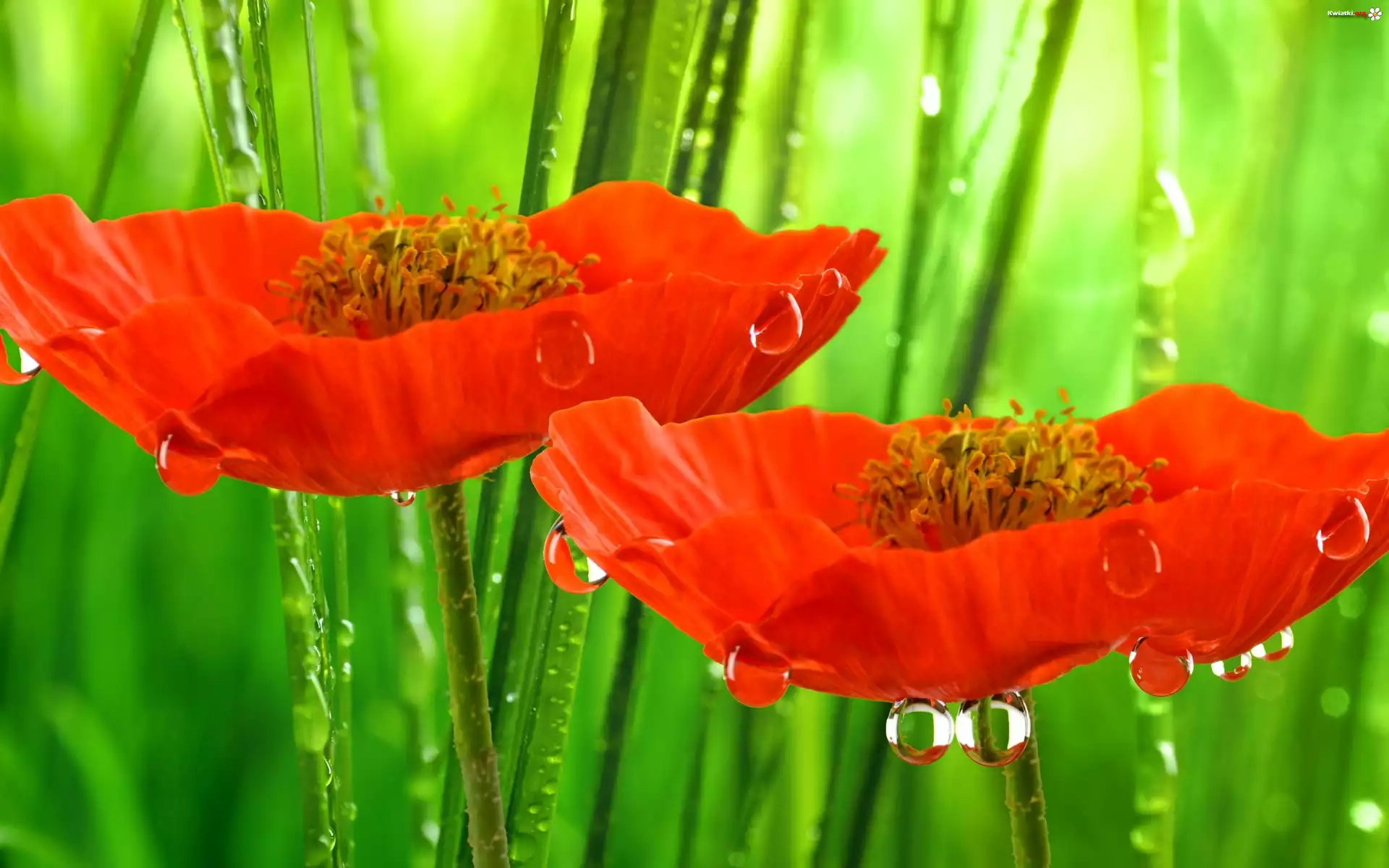 Maki, Trawa, Krople - Zdjęcia