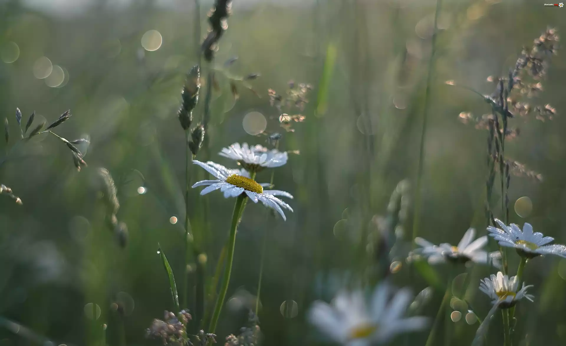 Margerytki, Trawa, Rozmycie - Zdjęcia