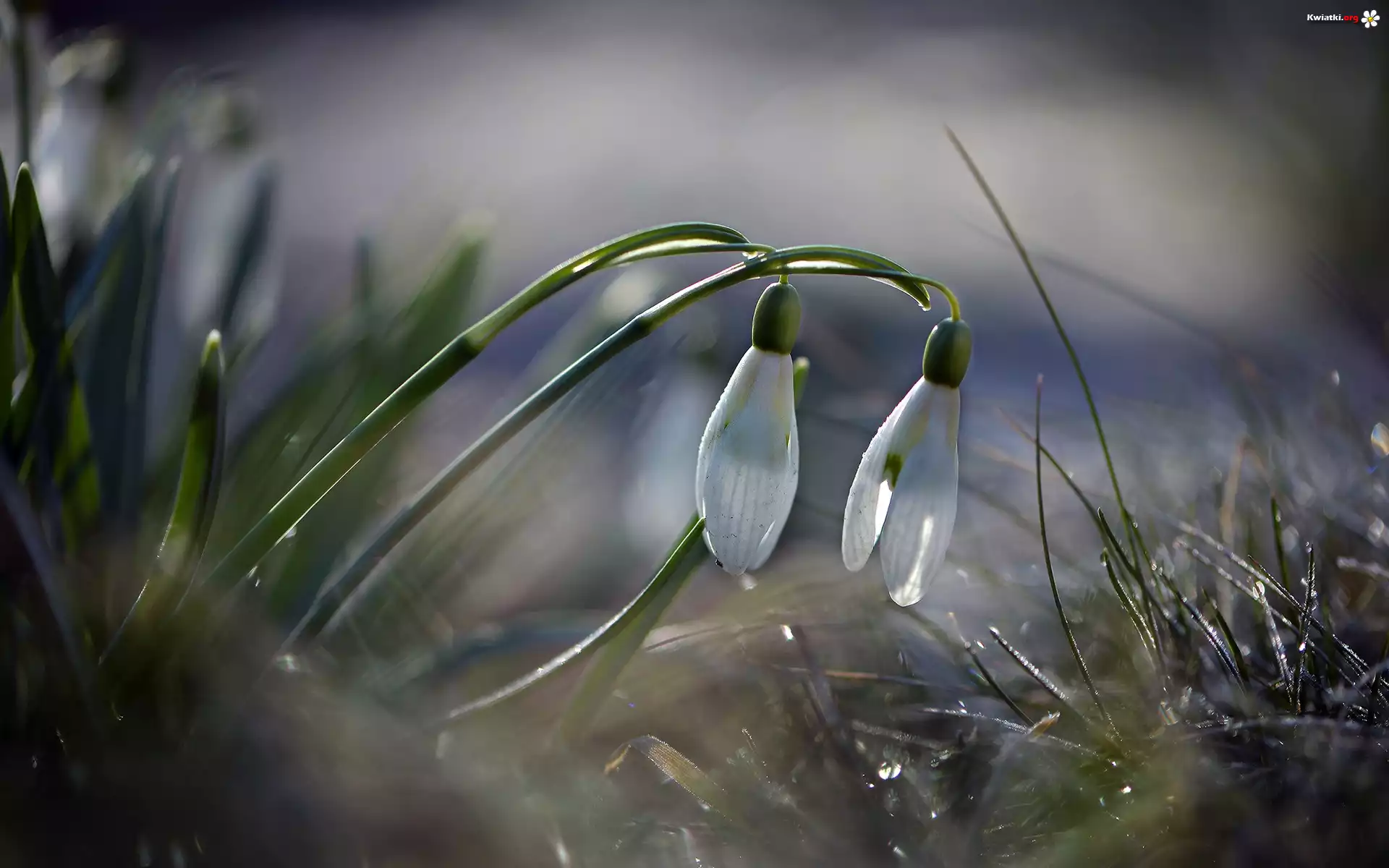 Przebiśniegi, Trawa, Krople - Zdjęcia