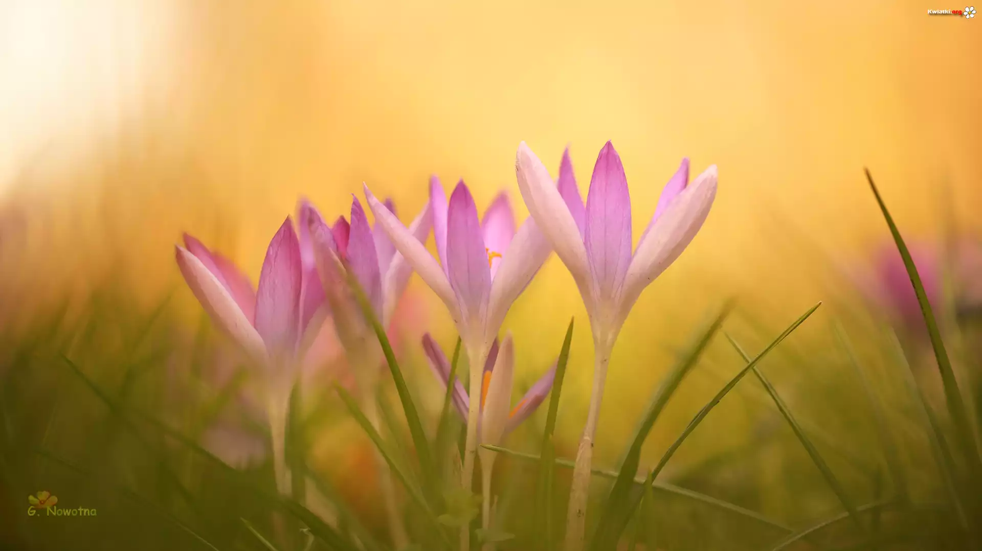 Różowe, Krokusy, Kwiaty, Trawa - Zdjęcia