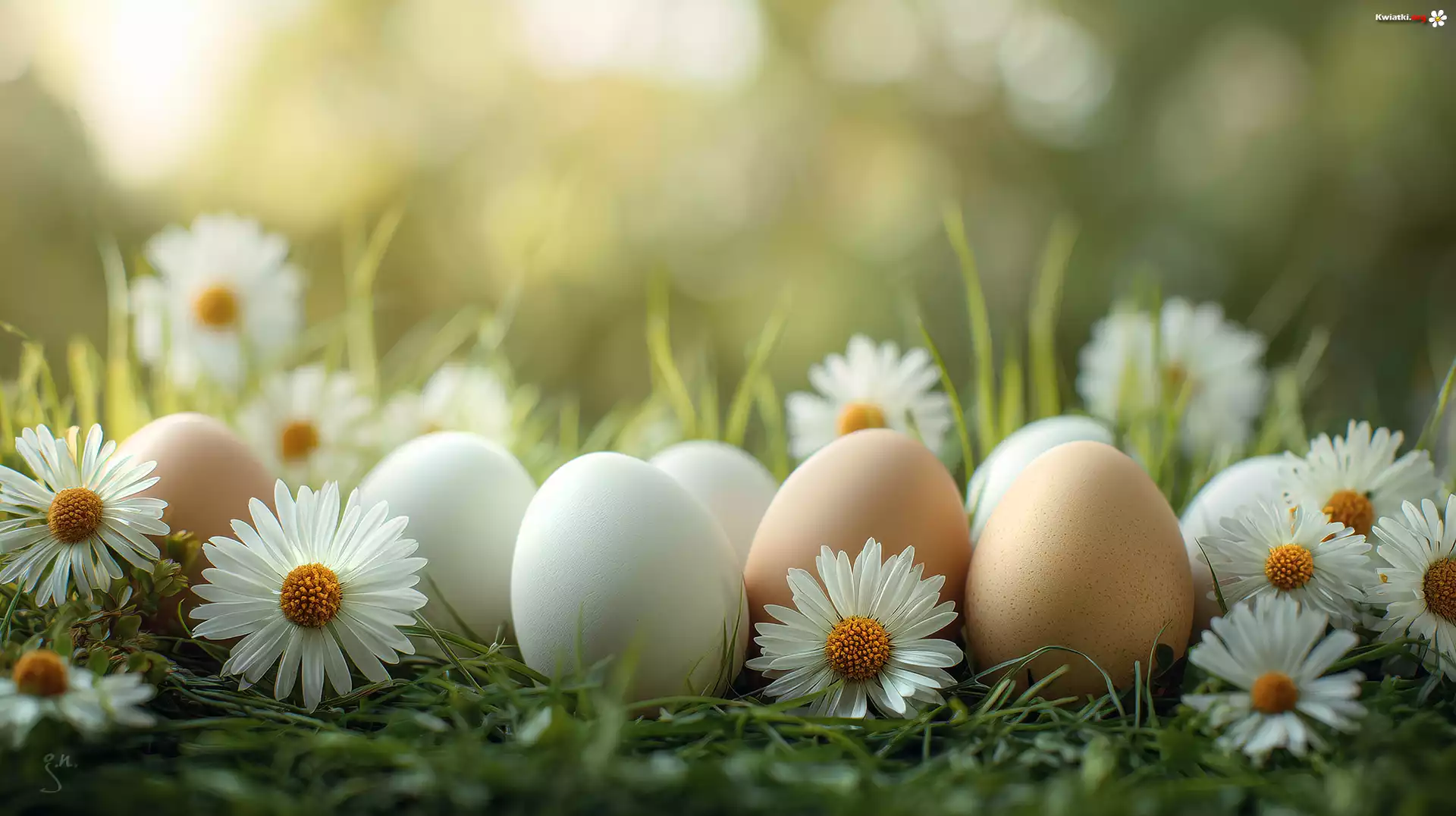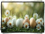 Jajka, Trawa, Stokrotki, Grafika AI - Zdjęcia