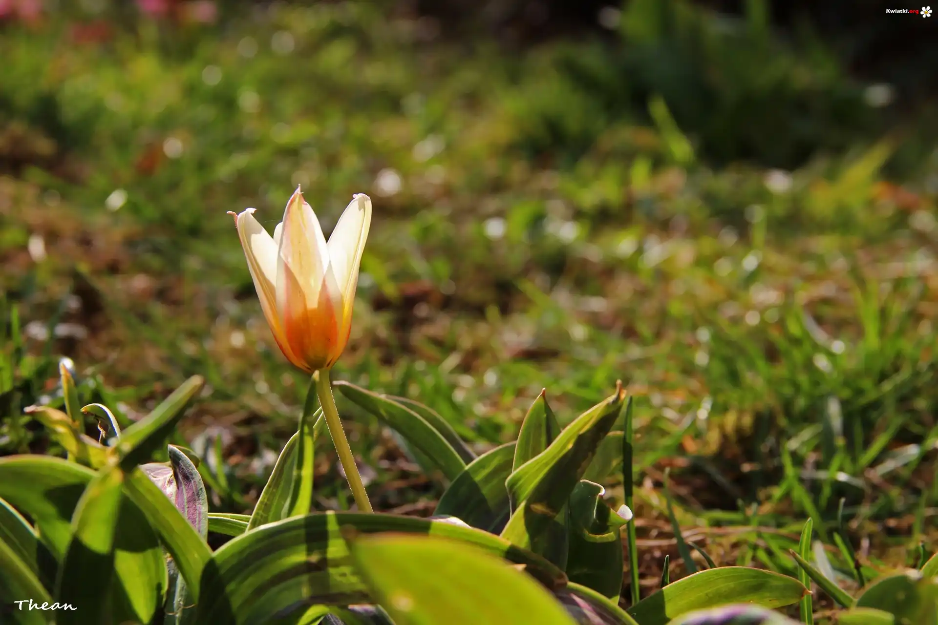 Kwiat Tulipan, Trawa, Kwiat