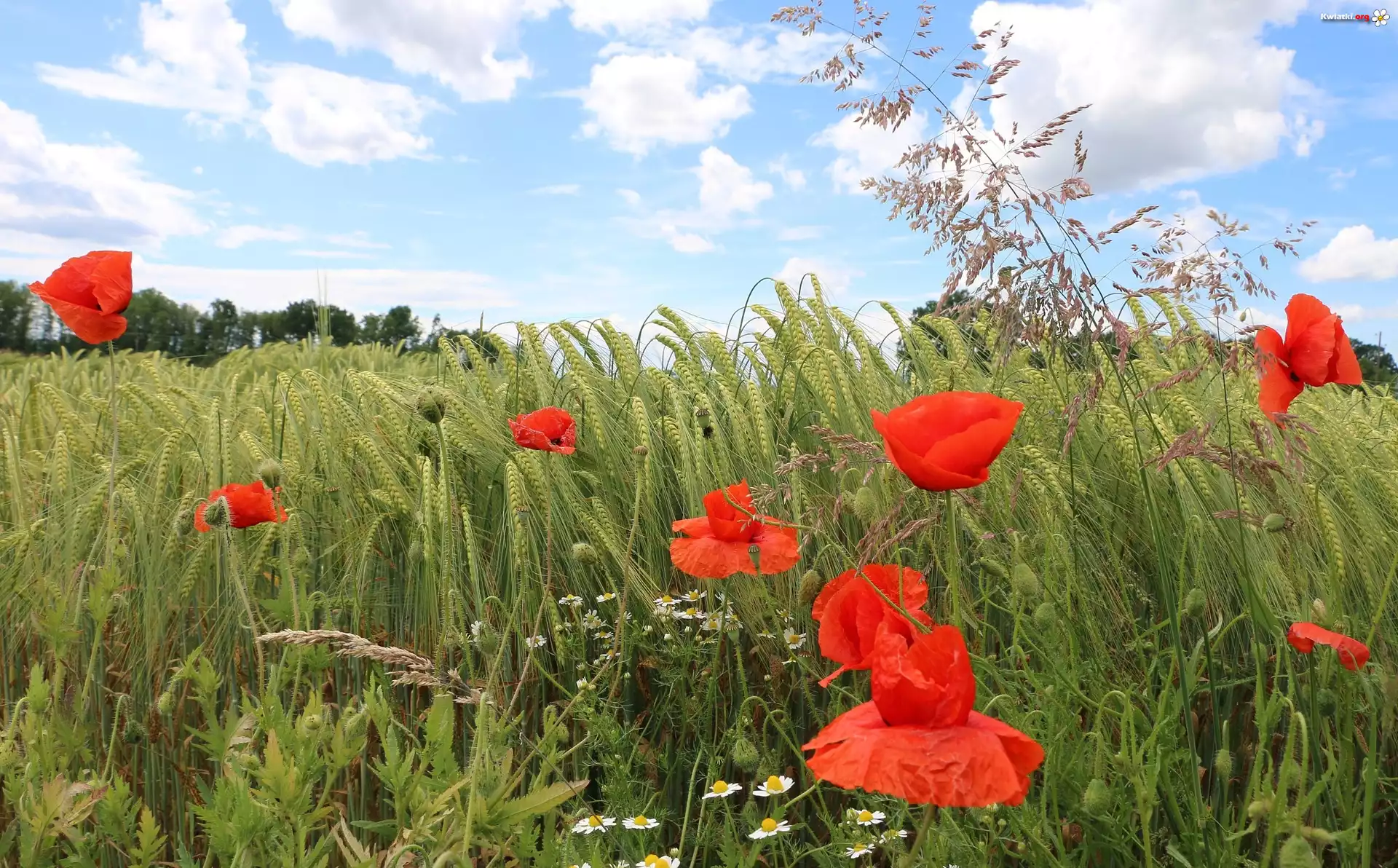 Pole, Łąka, Zboże, Trawa, Kwiaty, Polne, Maki - Zdjęcia