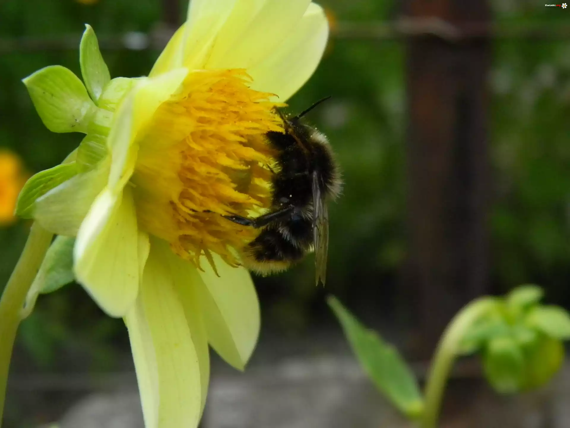 Kwiat Trzmiel, Na, Żółtej, Dalii