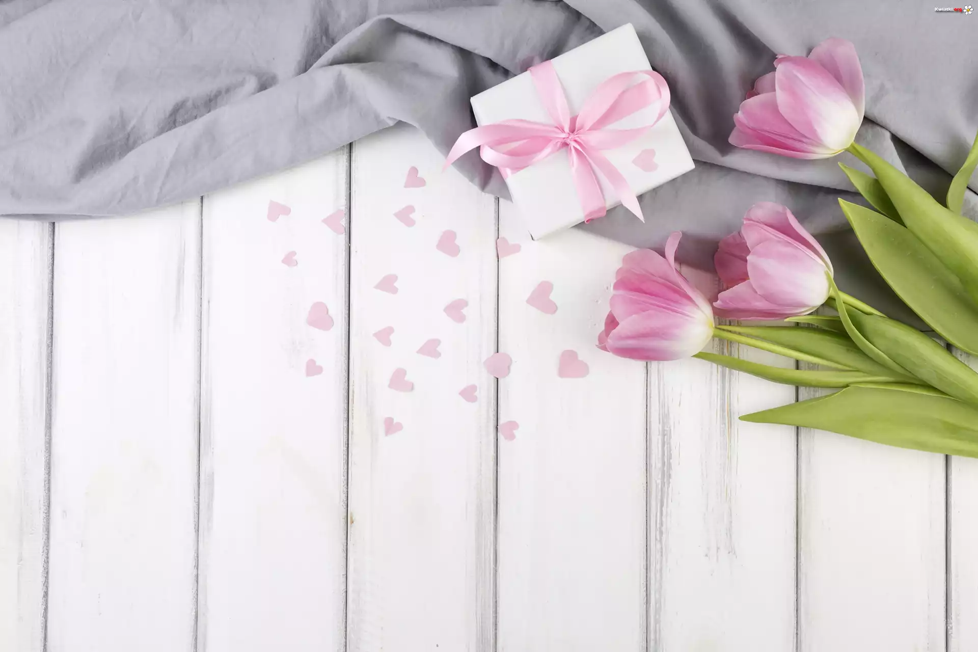 Kwiat Trzy, Tulipany, Prezent, Serca, Deski, Walentynki
