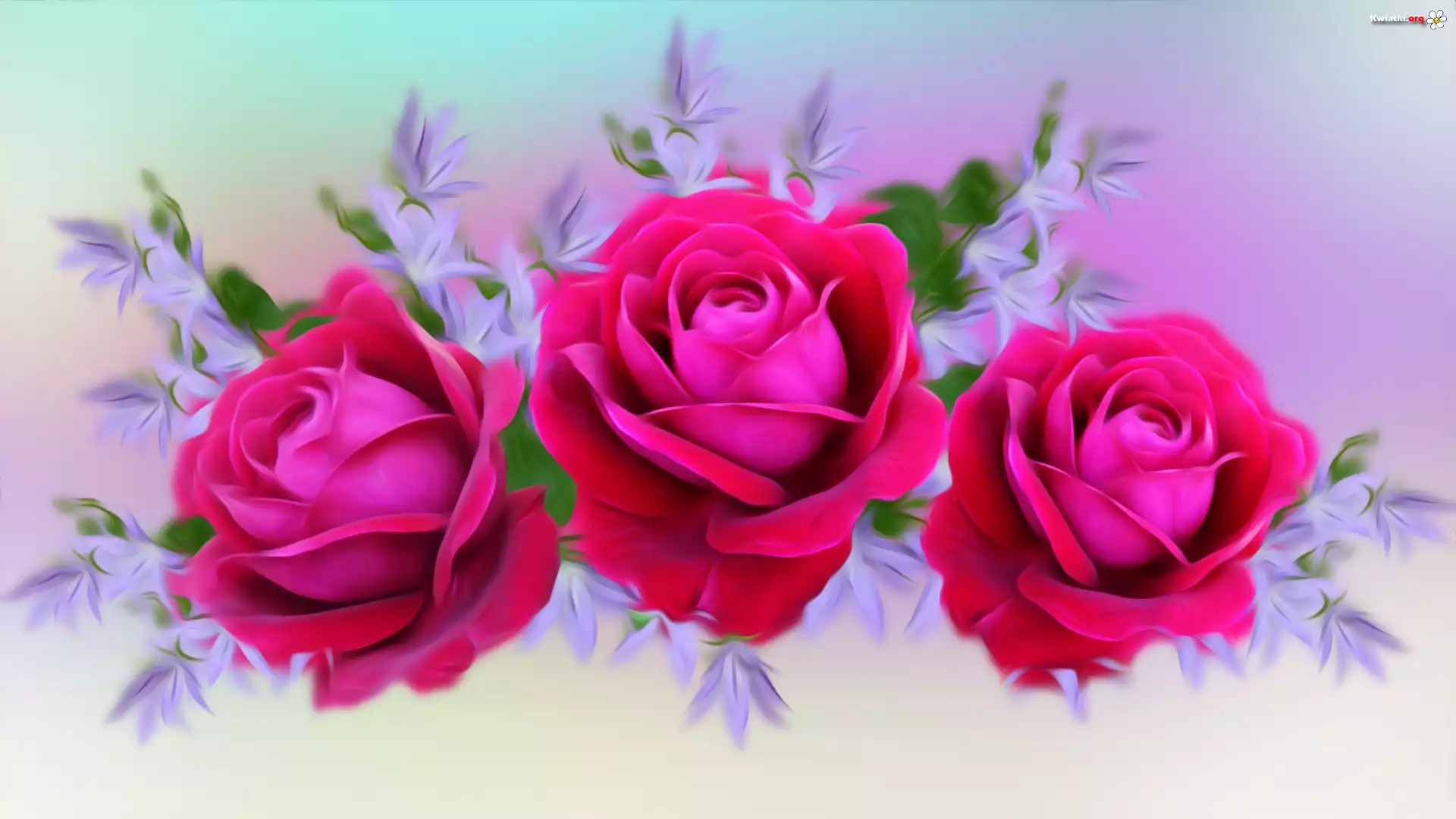 Trzy, Róże, Grafika 2D - Zdjęcia