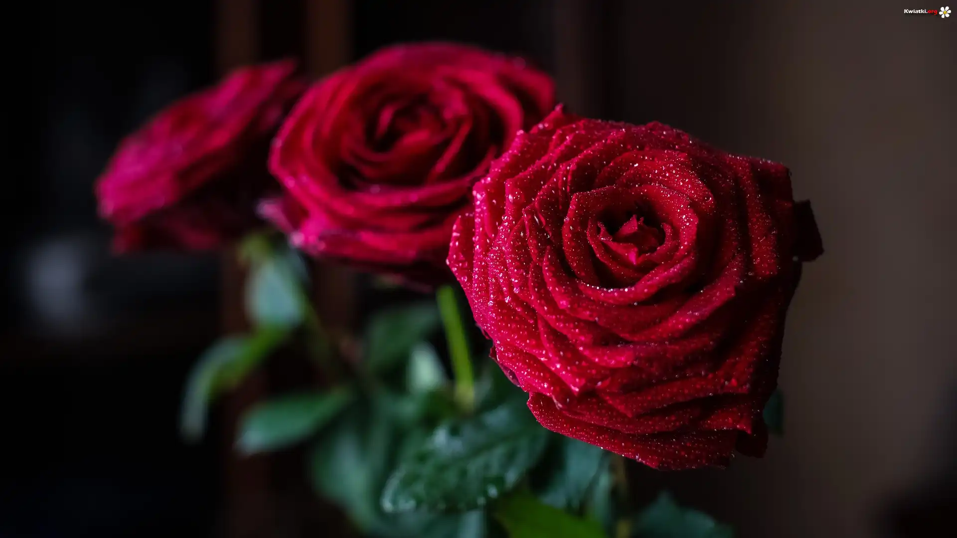 Trzy, Czerwone, Róże, Rosa, Krople, Wody - Zdjęcia