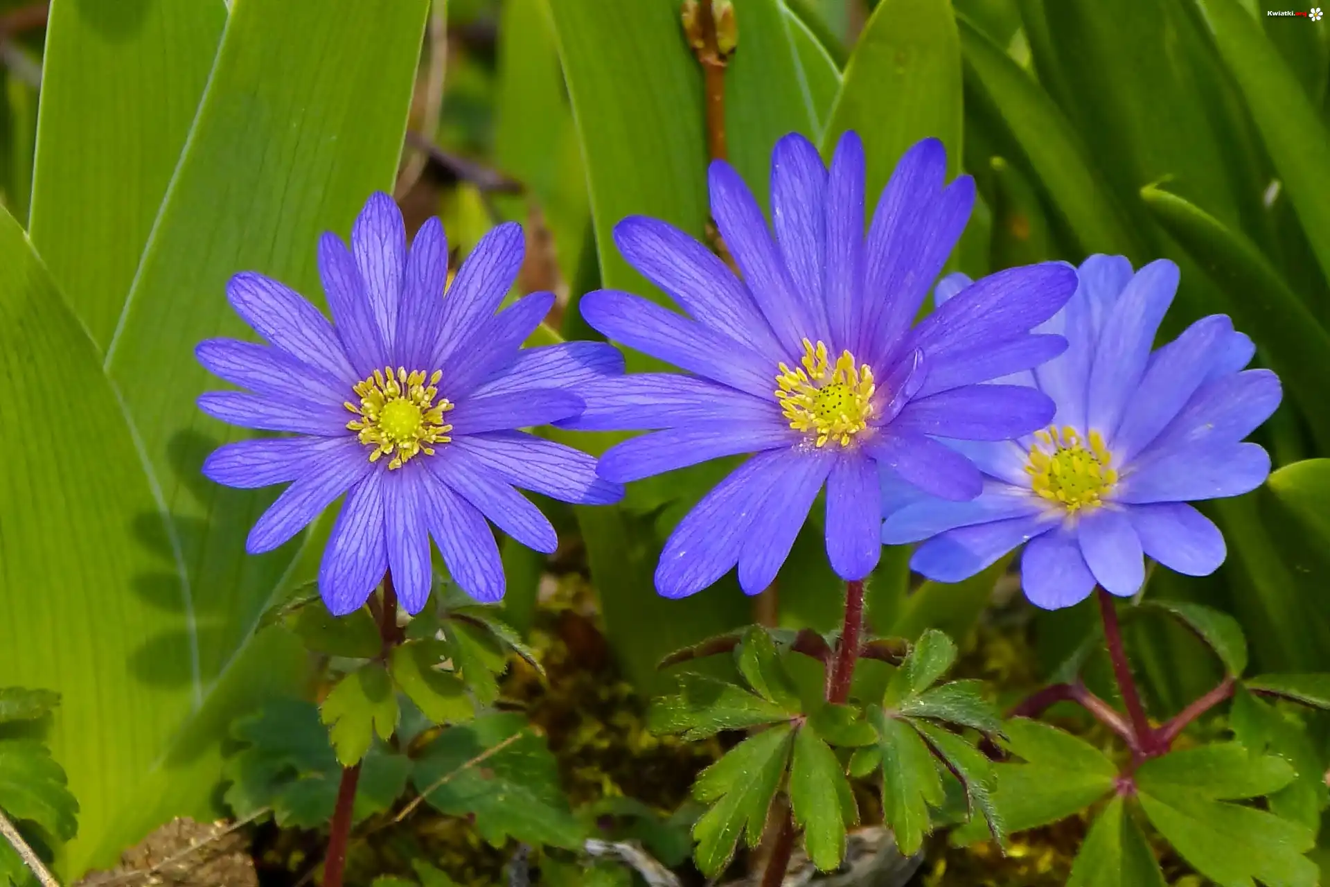 Trzy, Fioletowe, Kwiaty, Zawilce - Zdjęcia