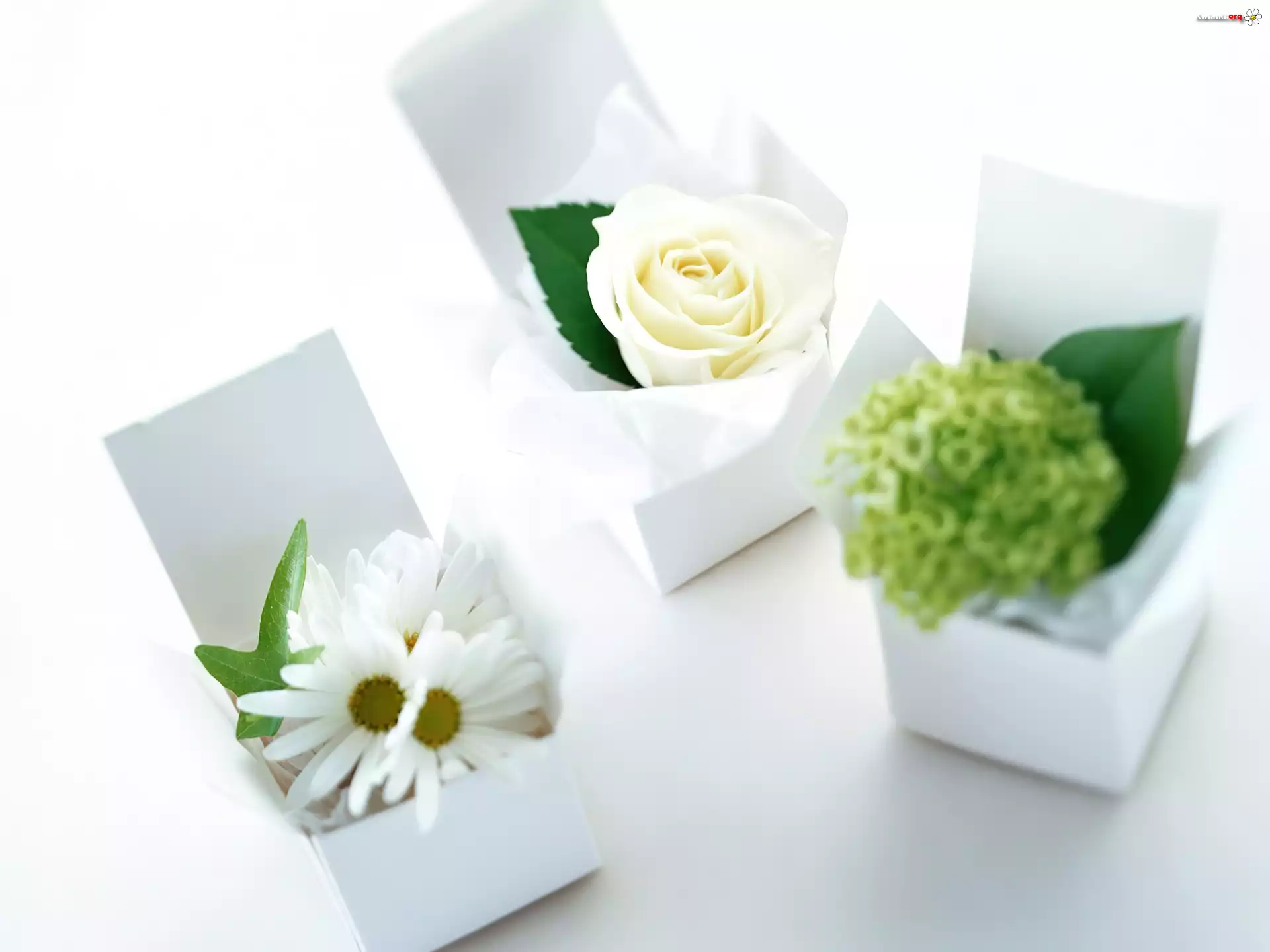 Kwiat Trzy, Białe, Pudełka, Kwiatki